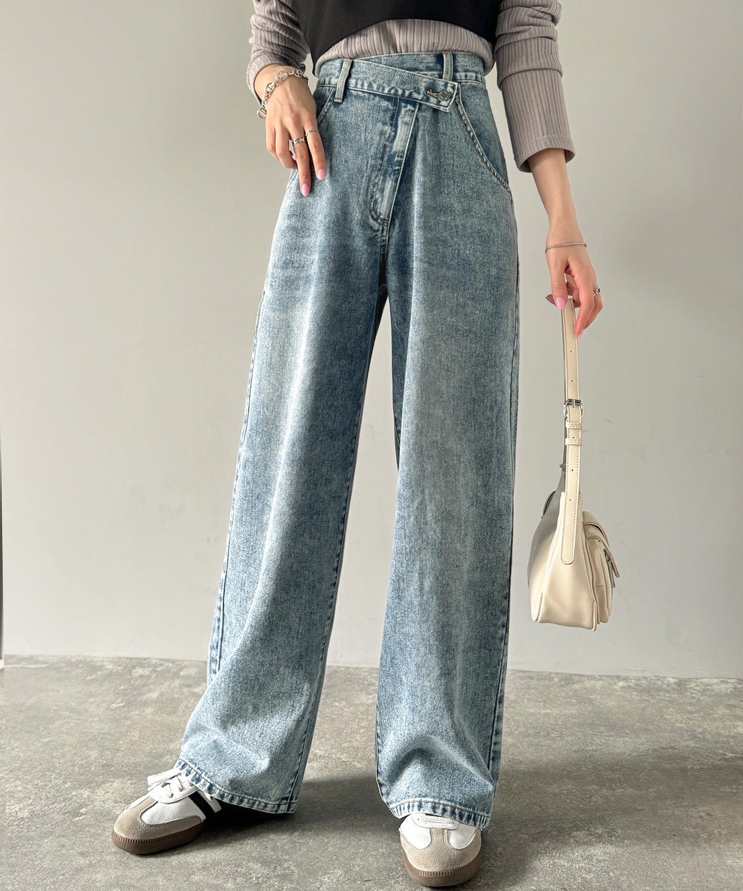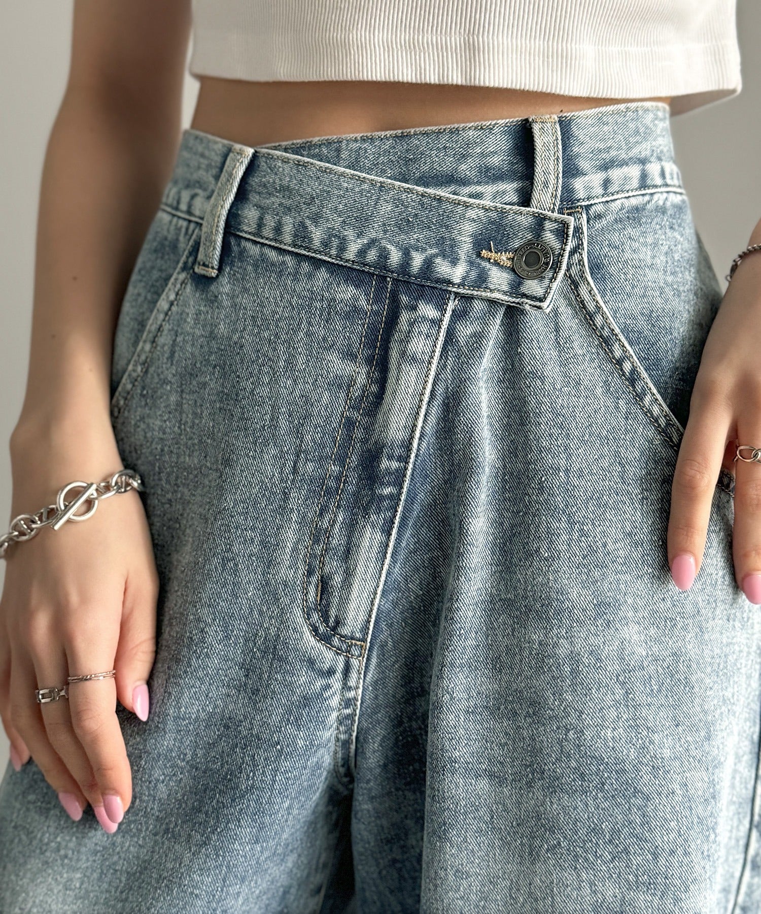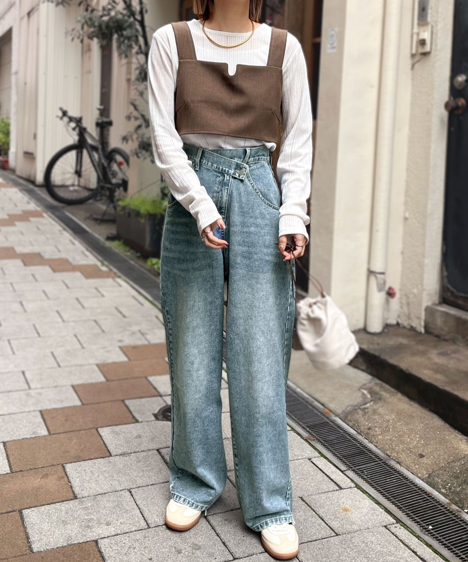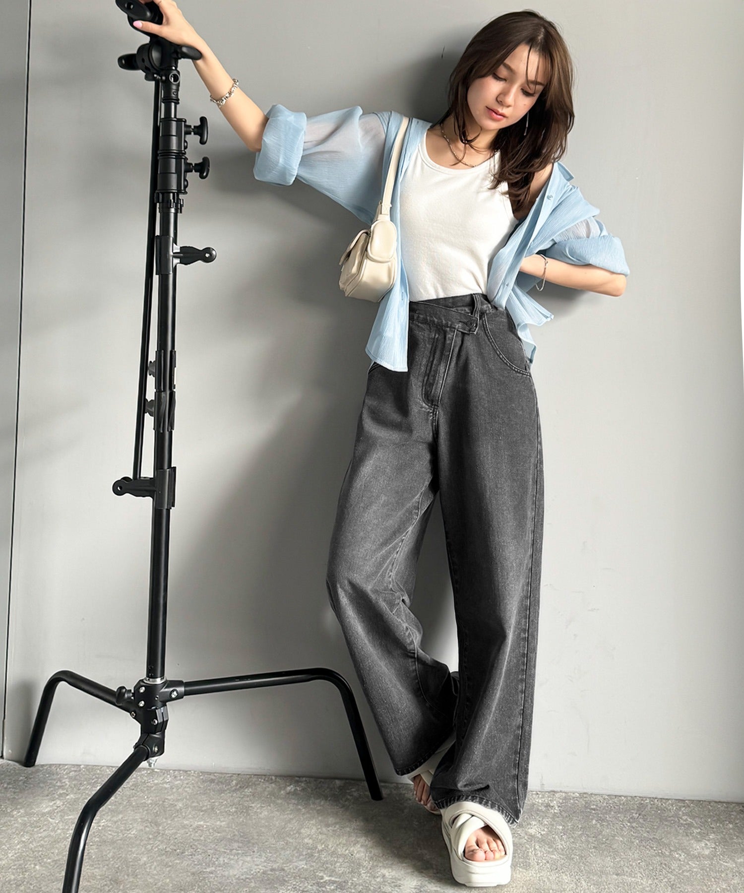 《sayo×クラシカルエルフコラボ》映えるウエストで、ちょい差しカジュアル!アシメウエストワイドデニム ce1015080