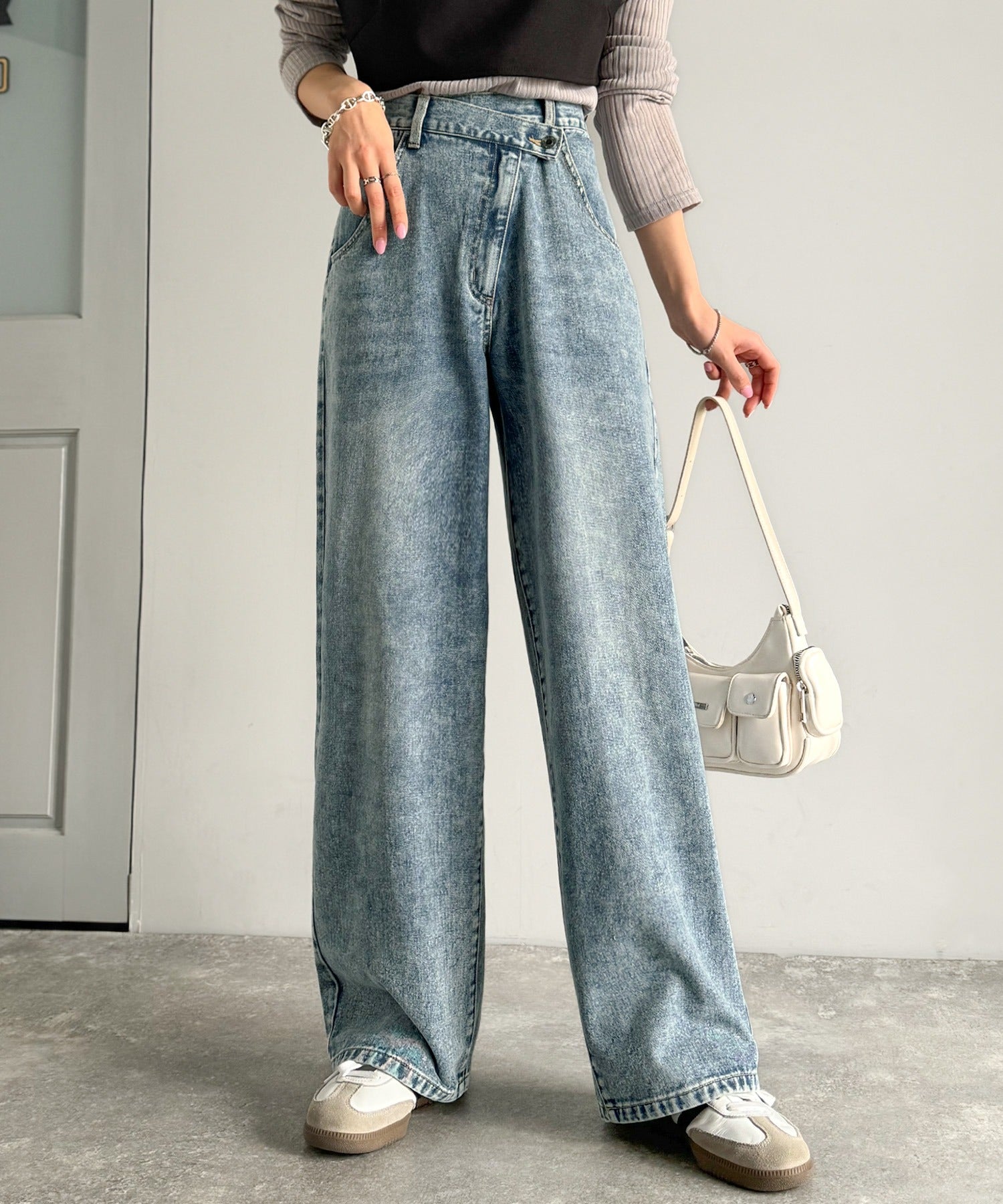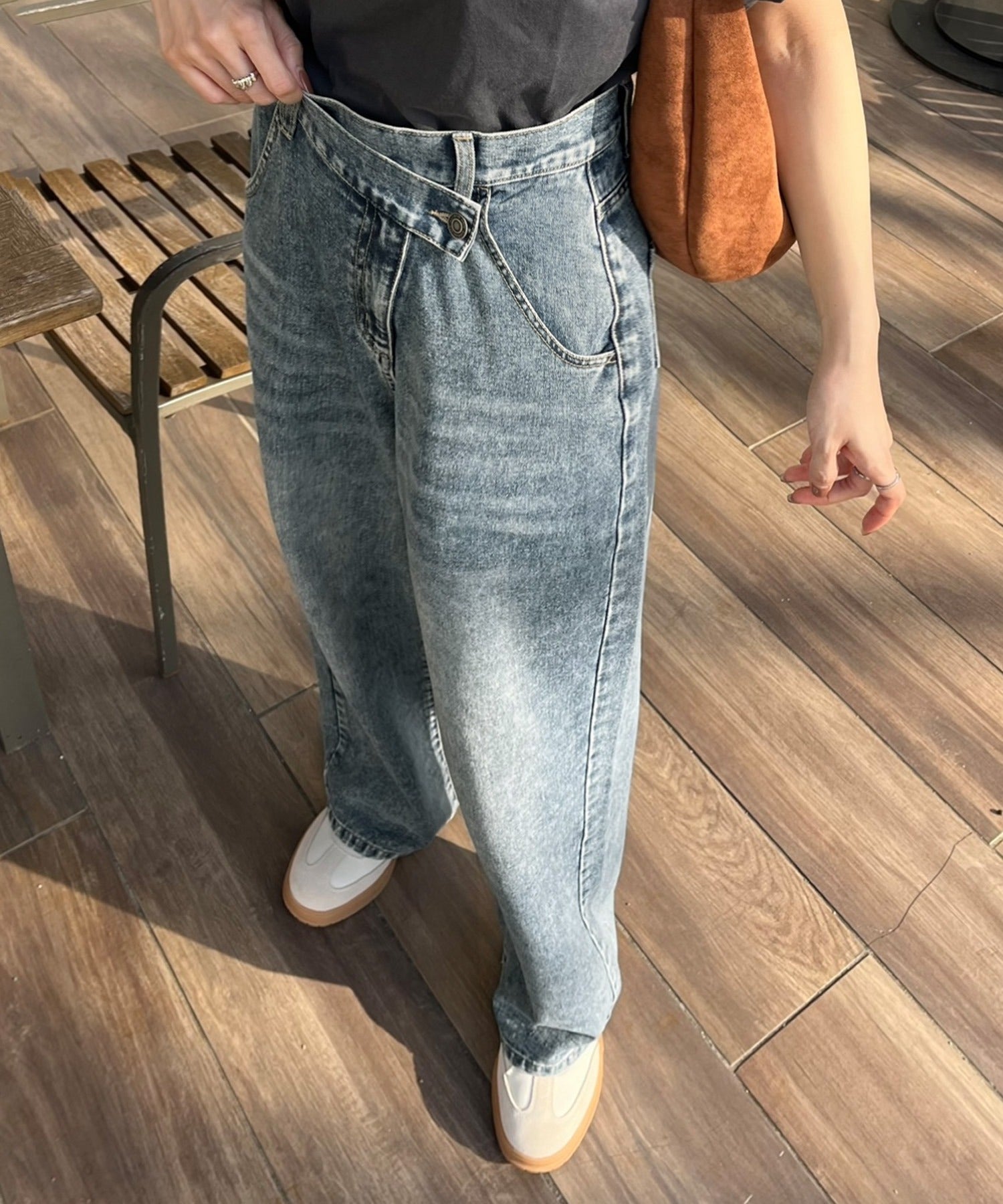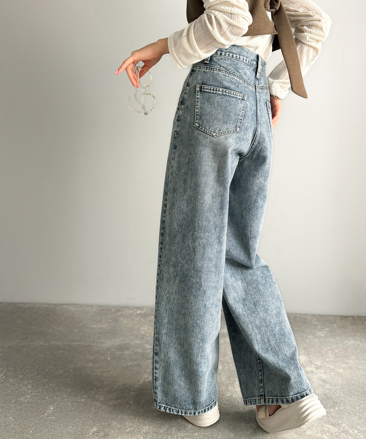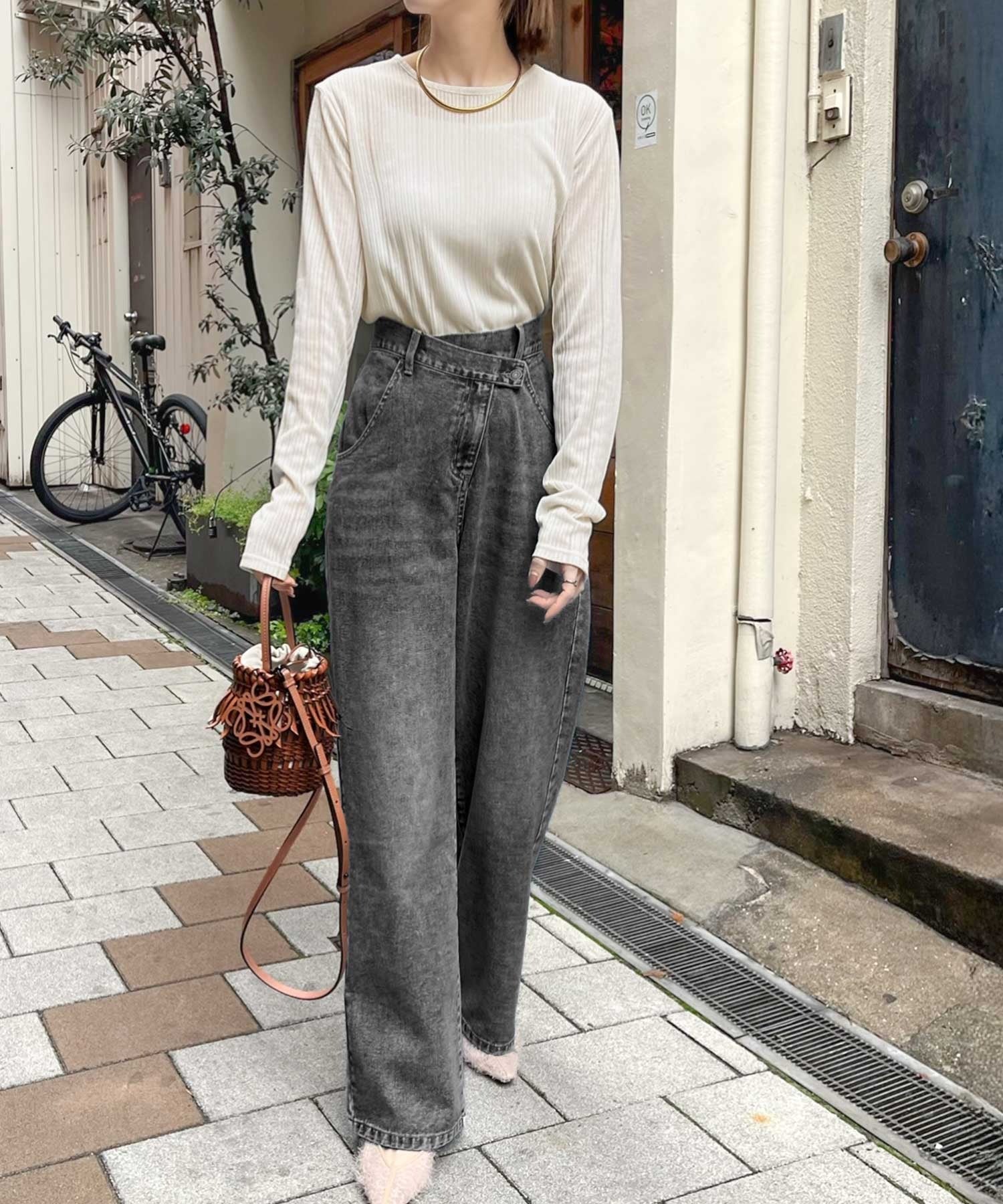 《sayo×クラシカルエルフコラボ》映えるウエストで、ちょい差しカジュアル!アシメウエストワイドデニム ce1015080