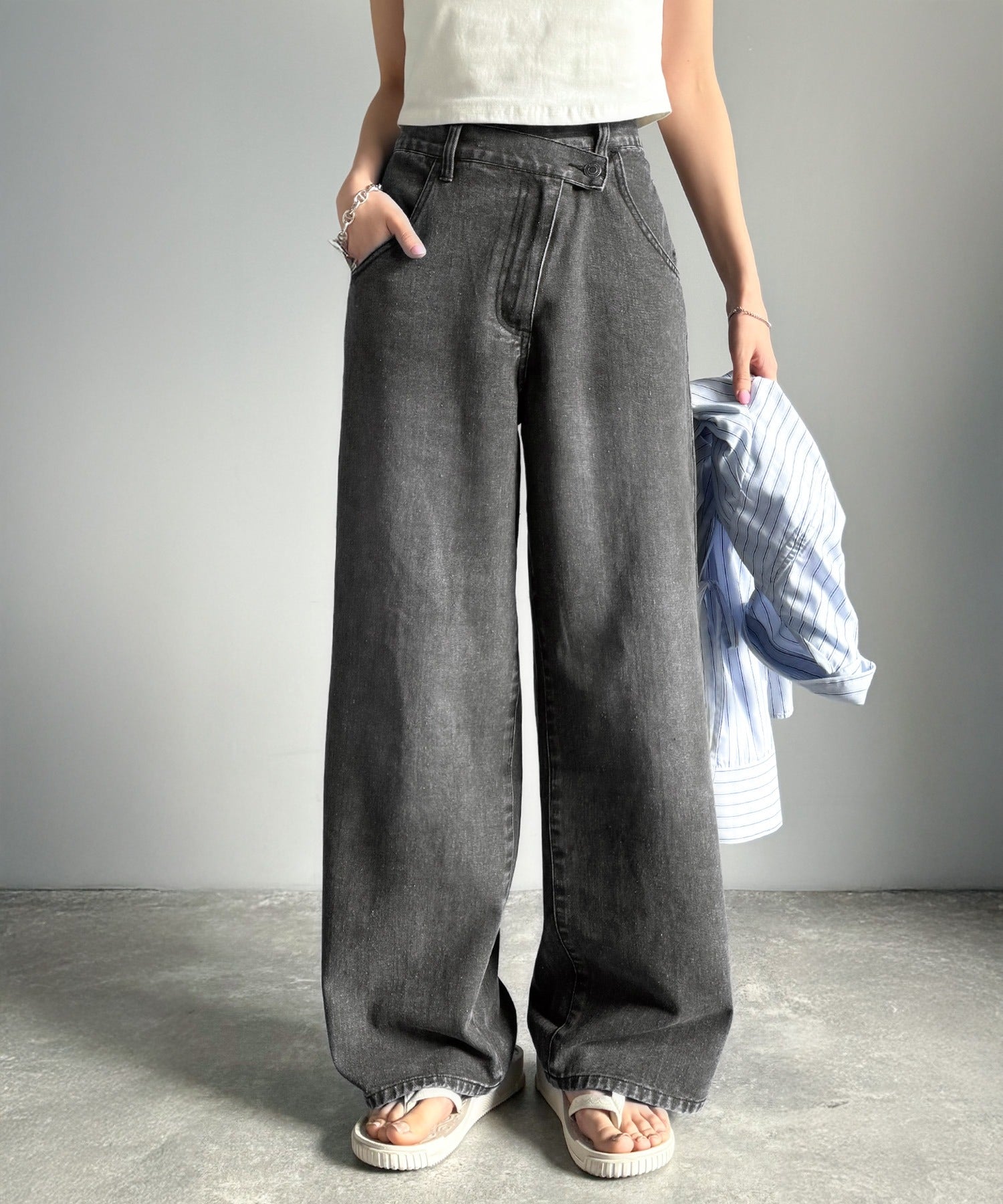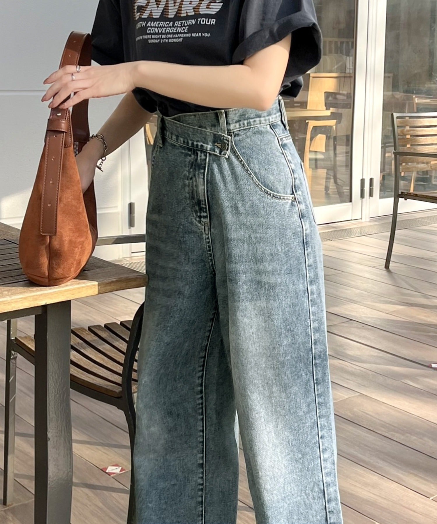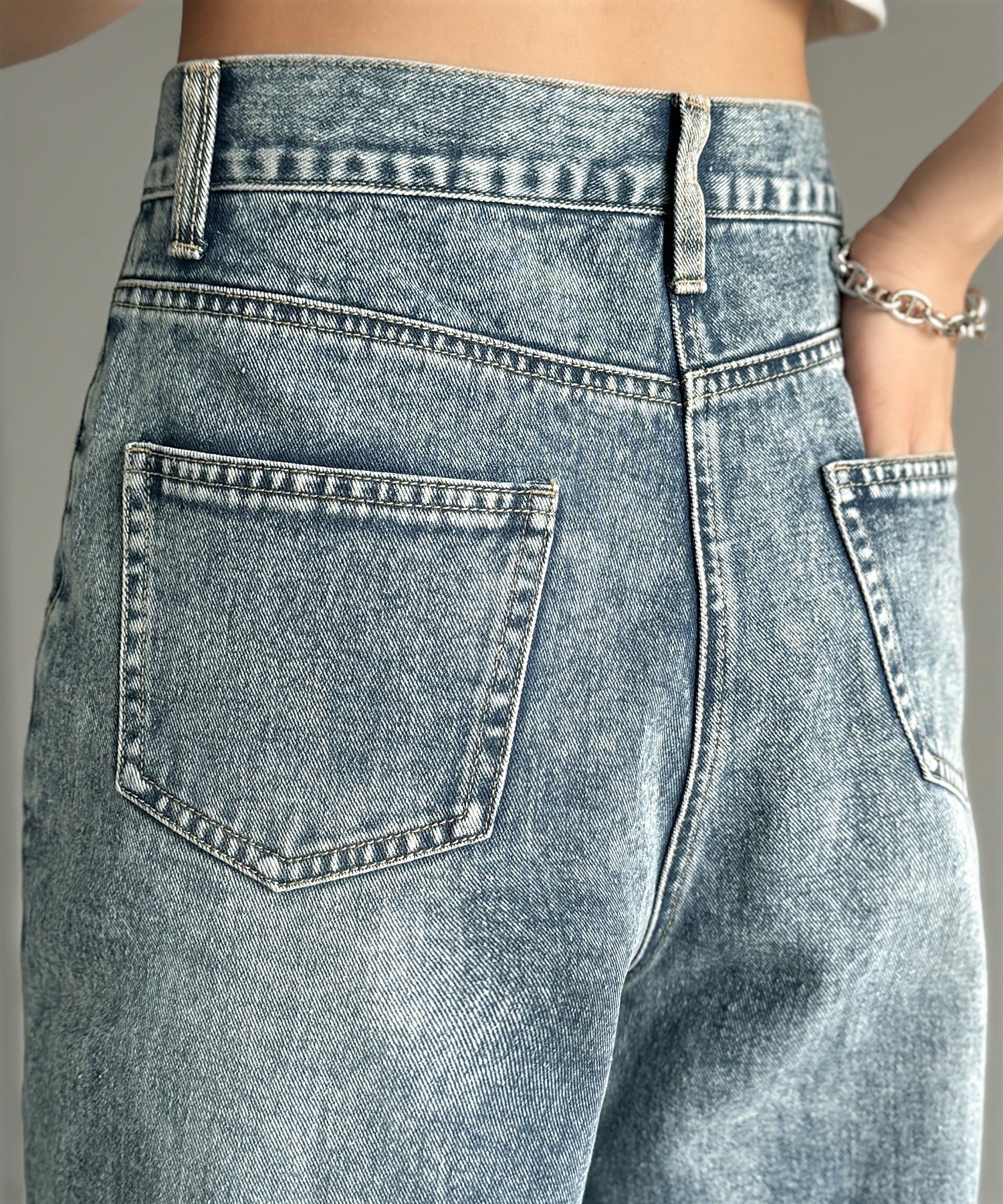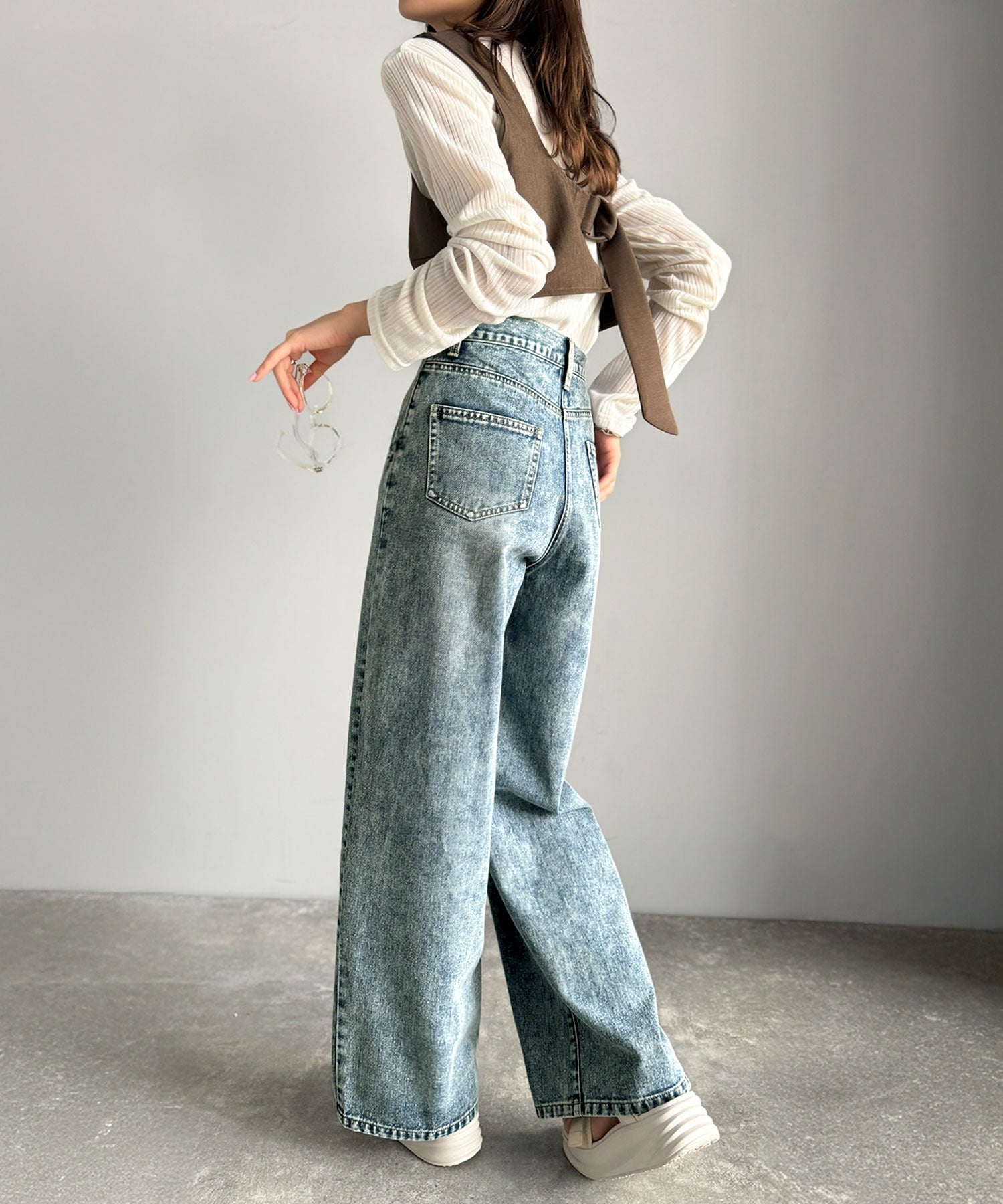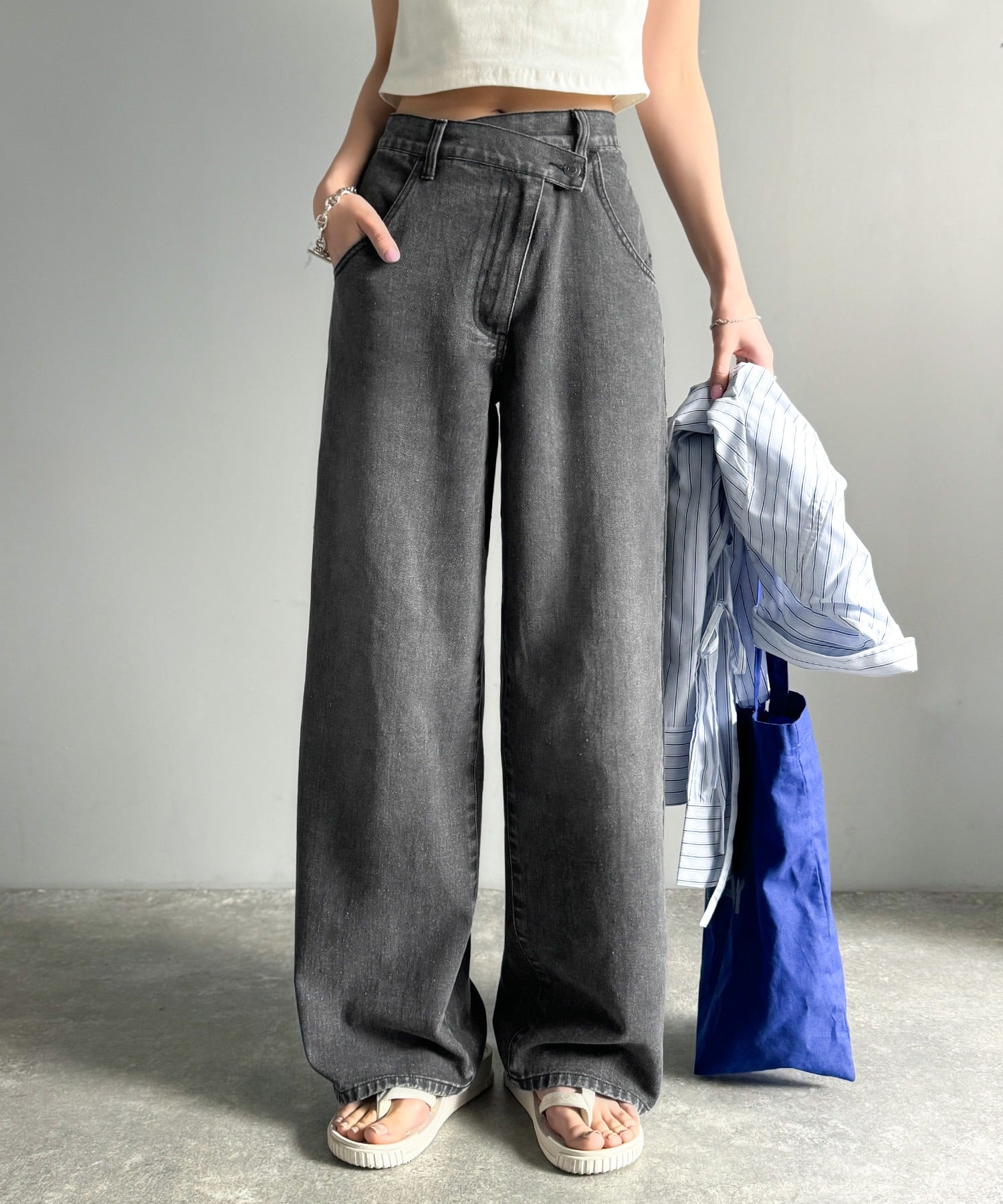 《sayo×クラシカルエルフコラボ》映えるウエストで、ちょい差しカジュアル!アシメウエストワイドデニム ce1015080