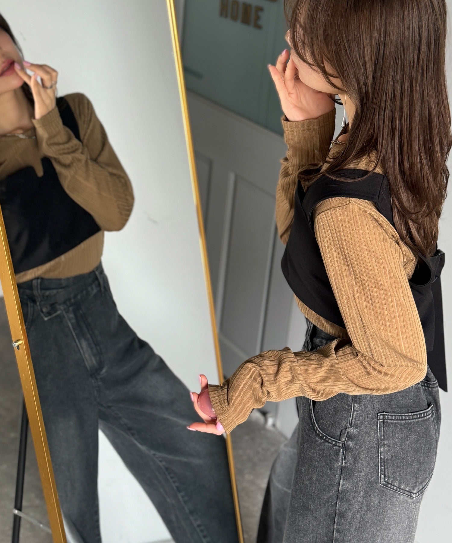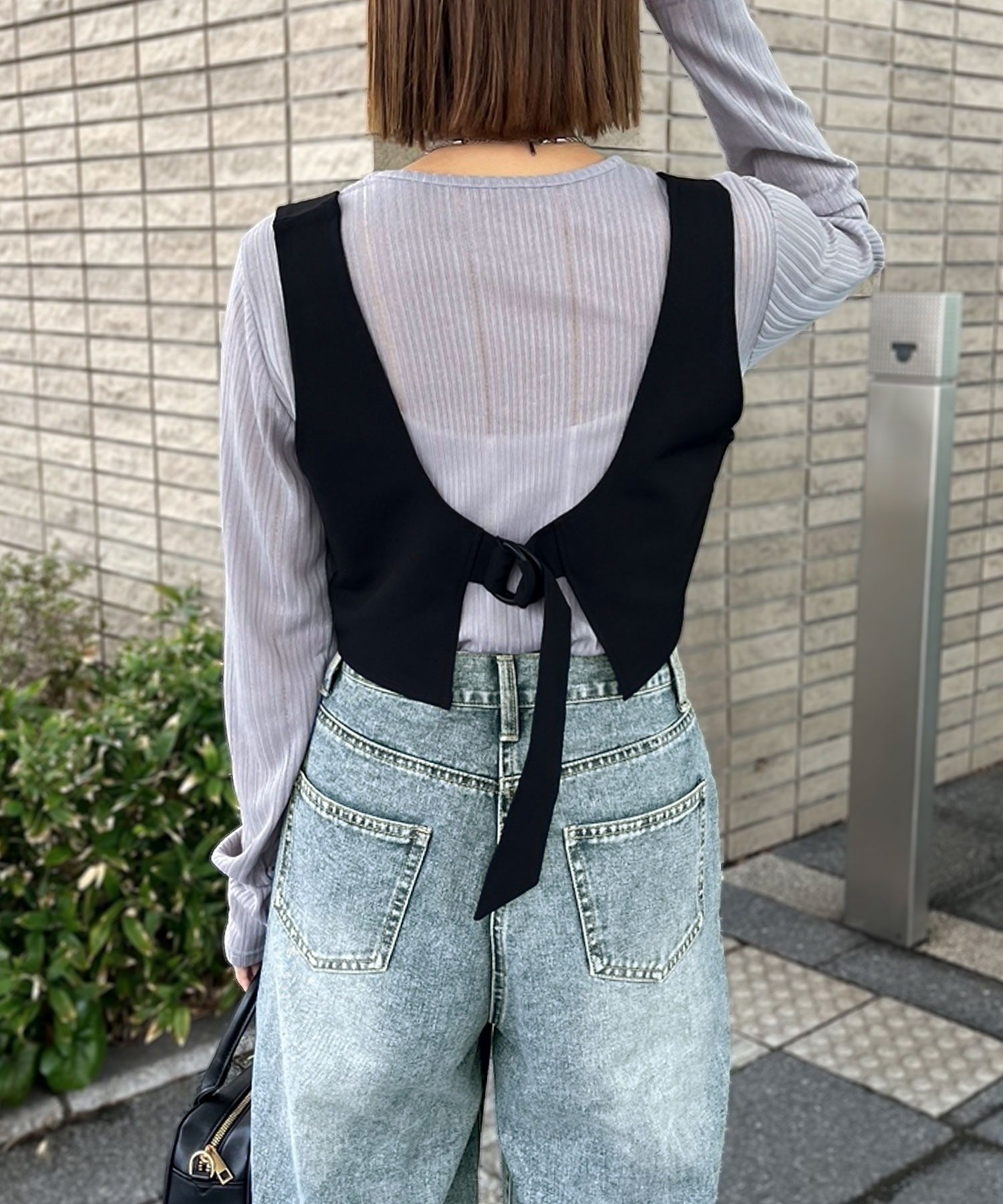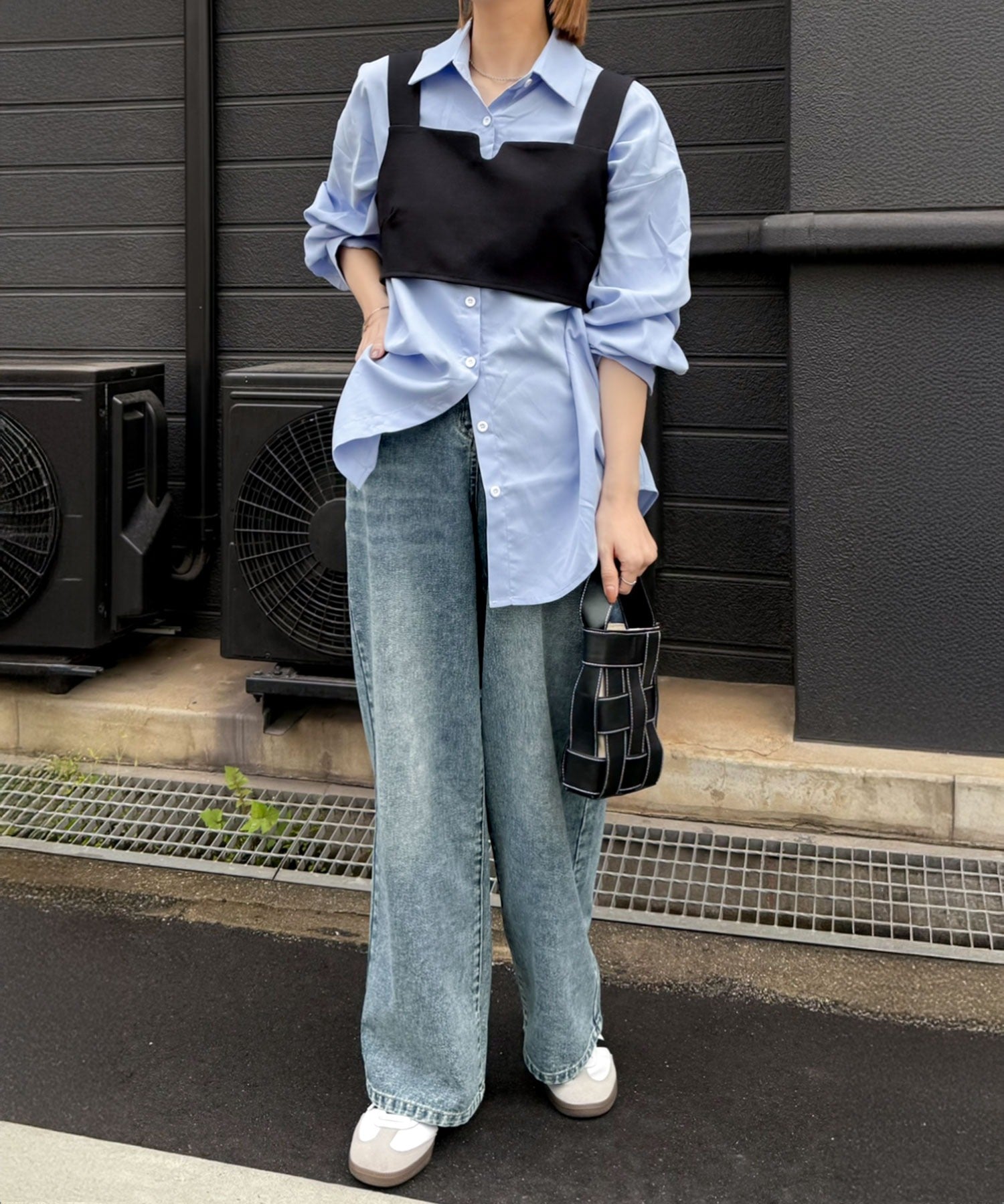 今季はビスチェとのレイヤードトップスと合わせると、トレンド感満載のスタイルが完成します♡