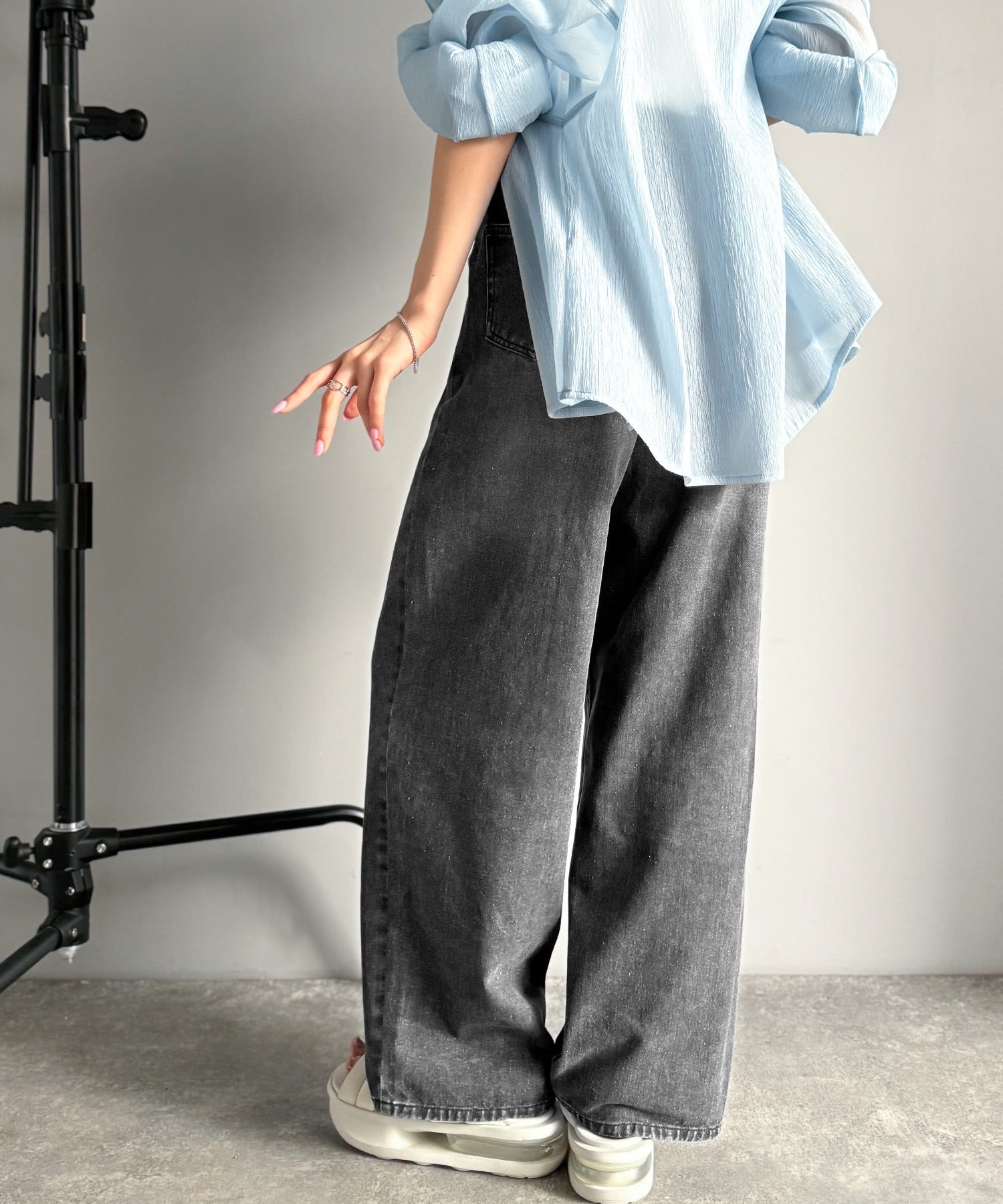 柔らかめのデニム素材なのでワイドシルエットでも動きやすく、