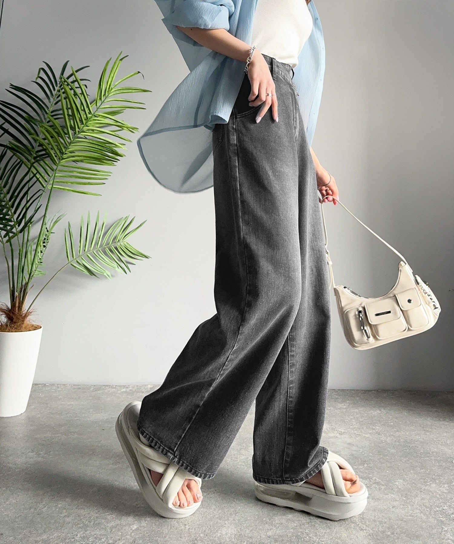 スタイルアップも叶う、美シルエットワイドデニム 。