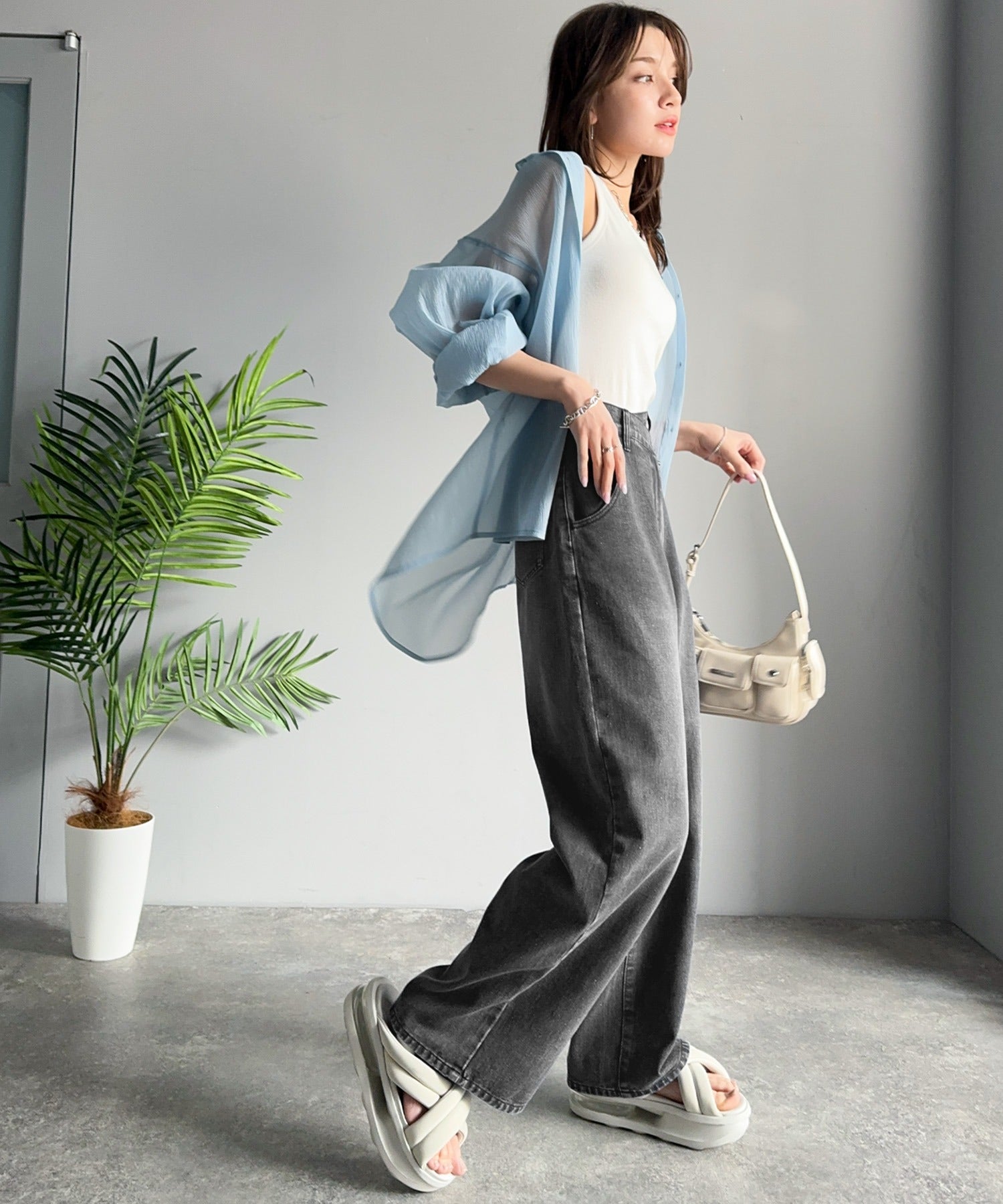 サマージャケットやシアーシャツを合わせて、クールなキレイめ大人カジュアルスタイルにするのもおすすめ◎