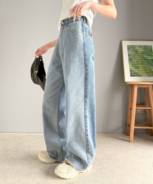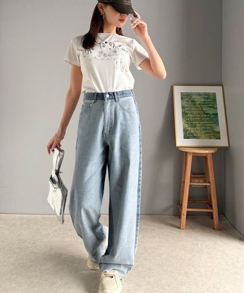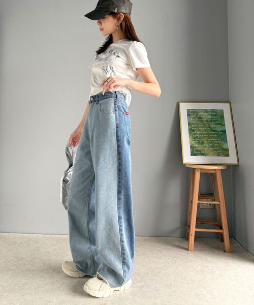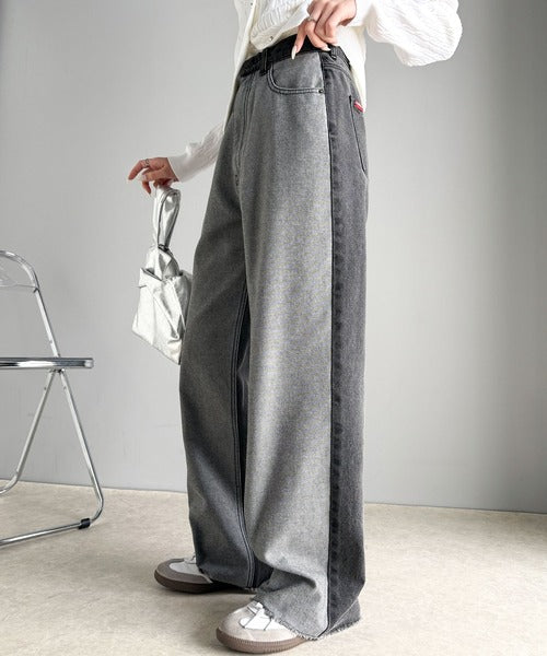 配色デザインでアクセントが効いた、大人のワイドデニム。