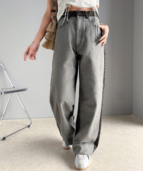 《Javaジャバコラボ》デイリースタイルをアップデートしてくれる。微配色ワイドデニムパンツ jv0789008