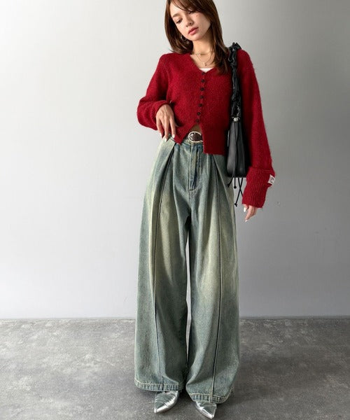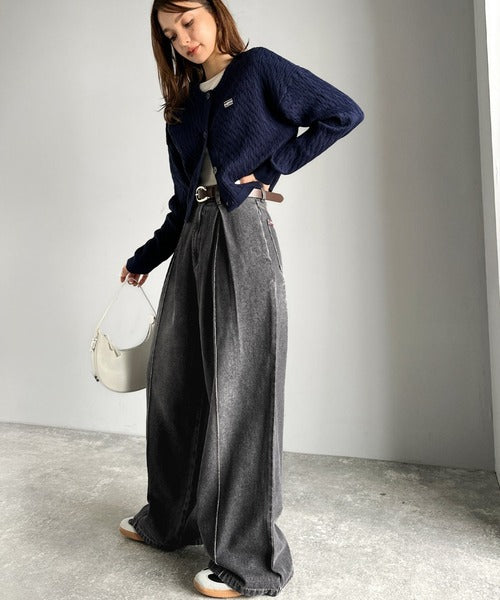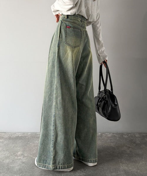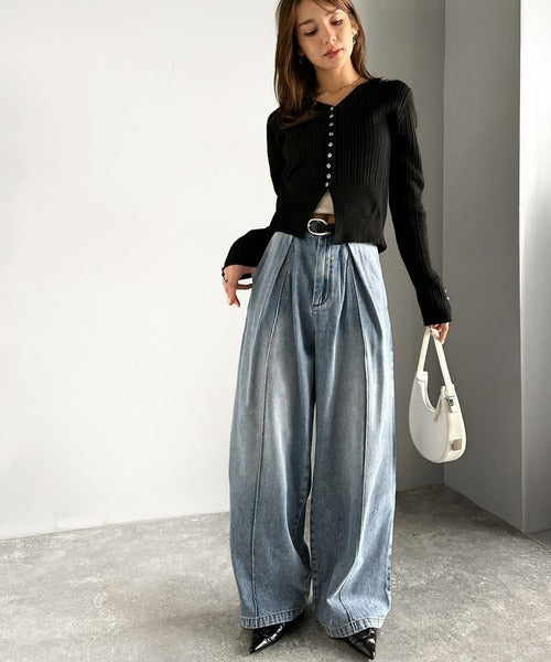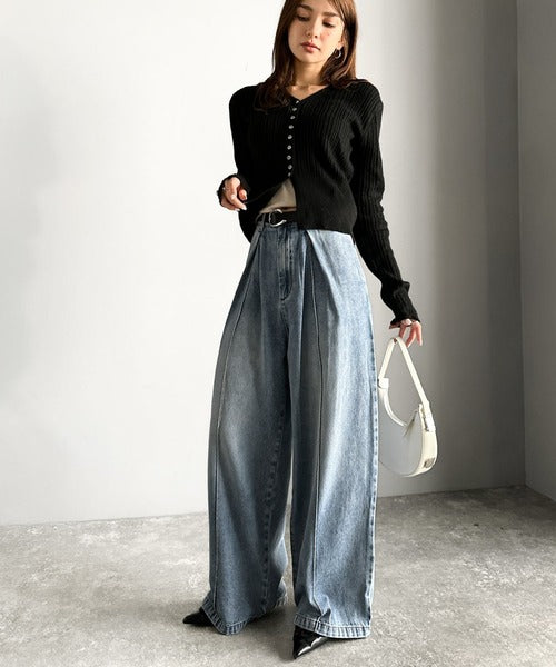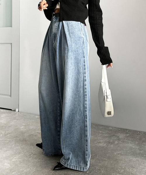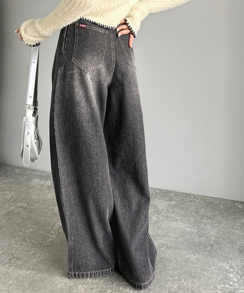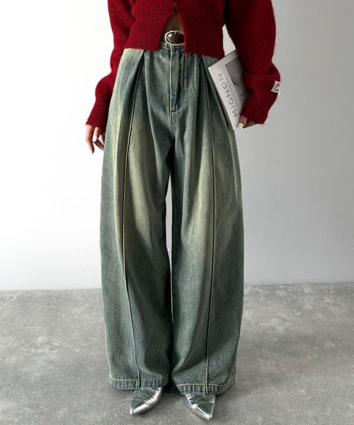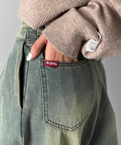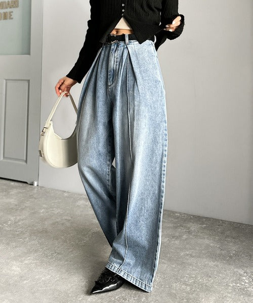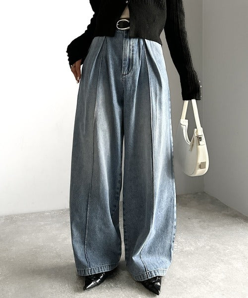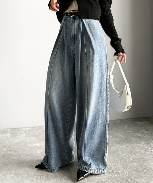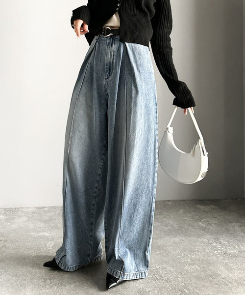 《JaVaジャバコラボ》立体シルエットの存在感◎ダブルタックワイドデニムパンツ jv0909017