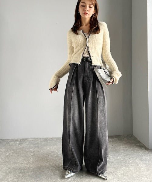 ダブルタックを施したワイドレッグデニムパンツ。
