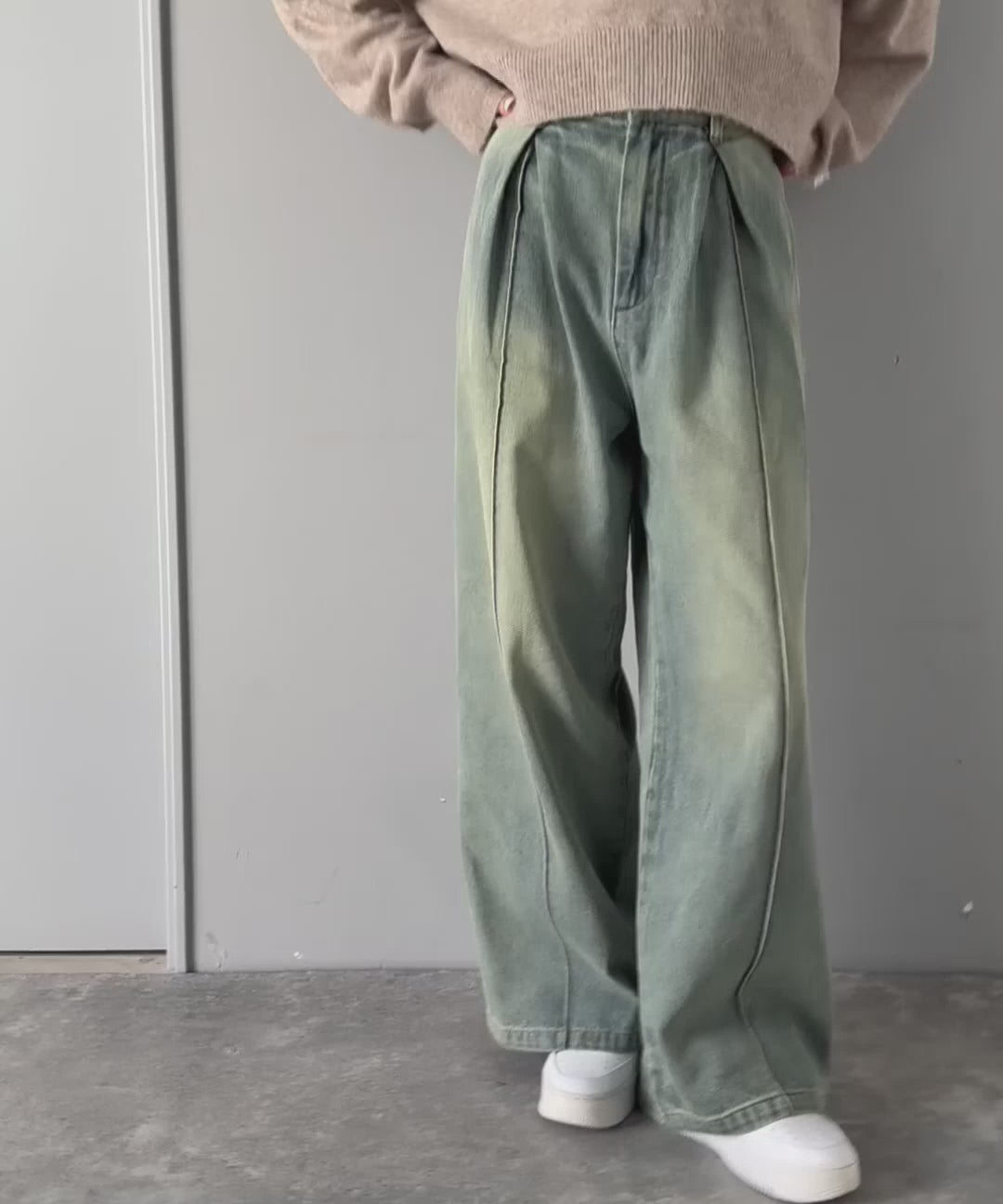 ワイドレッグのシルエットは脚のラインを拾わず、自然な落ち感で動きのある表情を演出♪