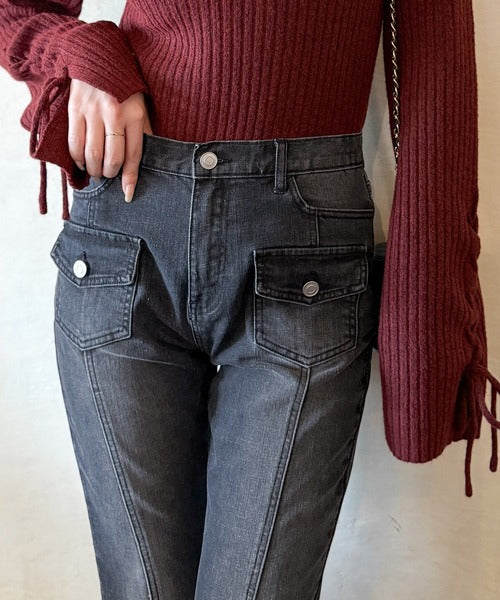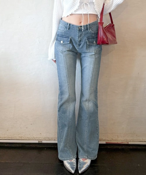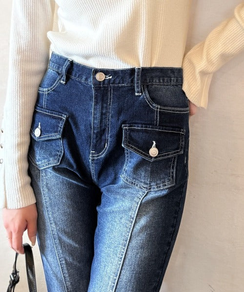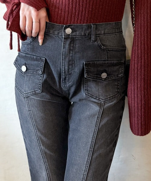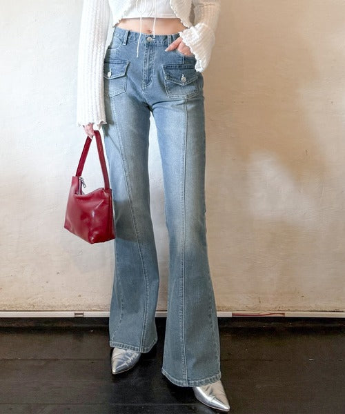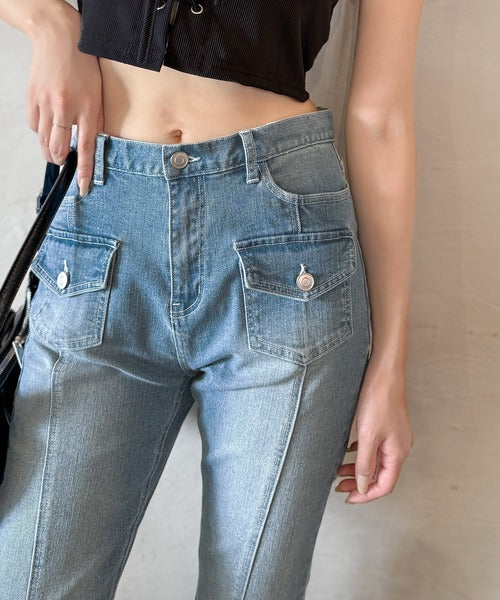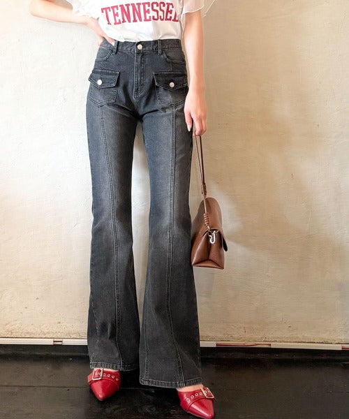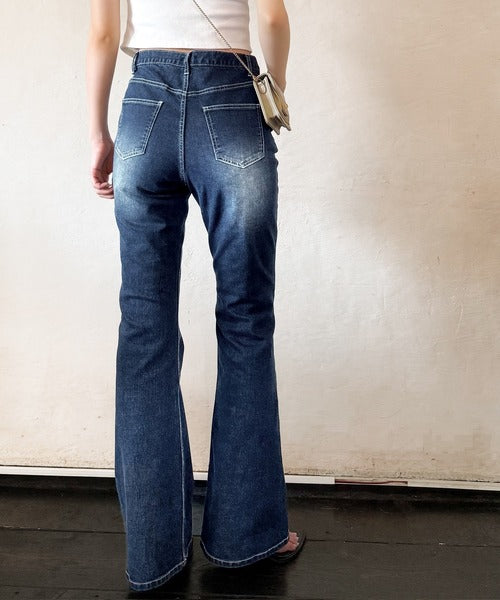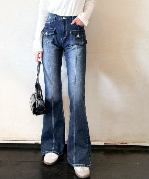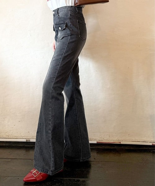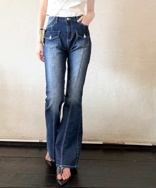 【mily bilet】脚、盛れすぎ注意!ポケットデザインストレッチフレアデニム mi0909009