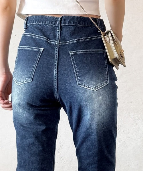 ヴィンテージ感のある濃淡加工と自然なフレアシルエットが、