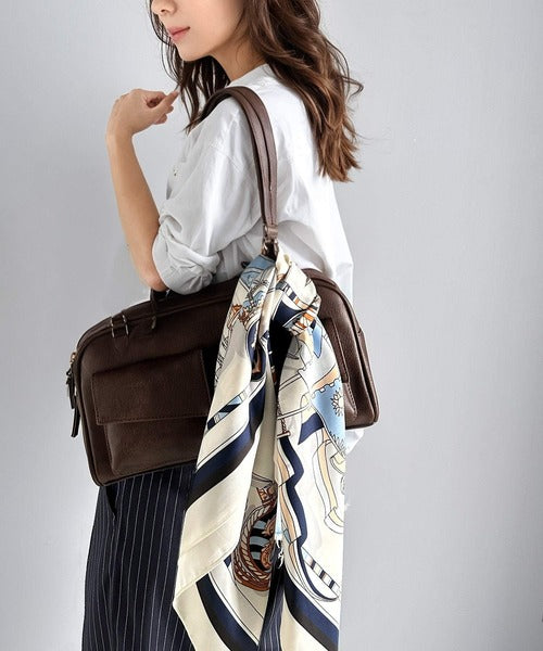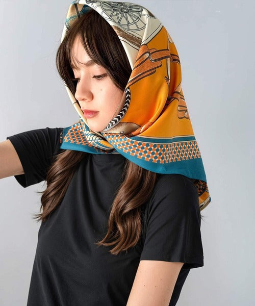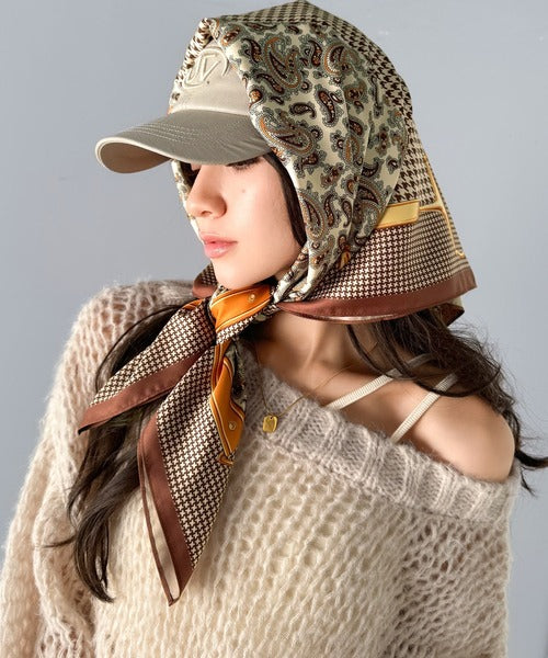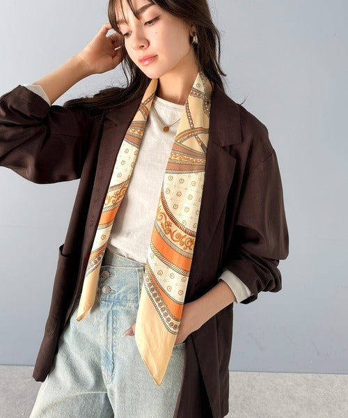 大人の女性の魅力を引き立てる、クラシカルなパネル柄スカーフ。