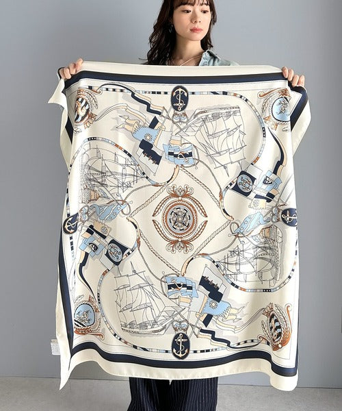 クラシカルで優雅な柄いきが特徴の大判スカーフ。