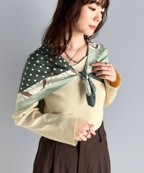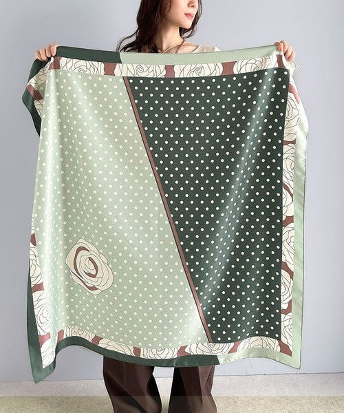 上品カワイイ♪90cm×90cmパネル柄シルクライク大判スカーフ ce1240056