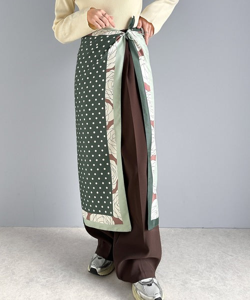 ラップスカート風にボトムスの上からレイヤードして、トレンドを意識したスタイルにも◎。