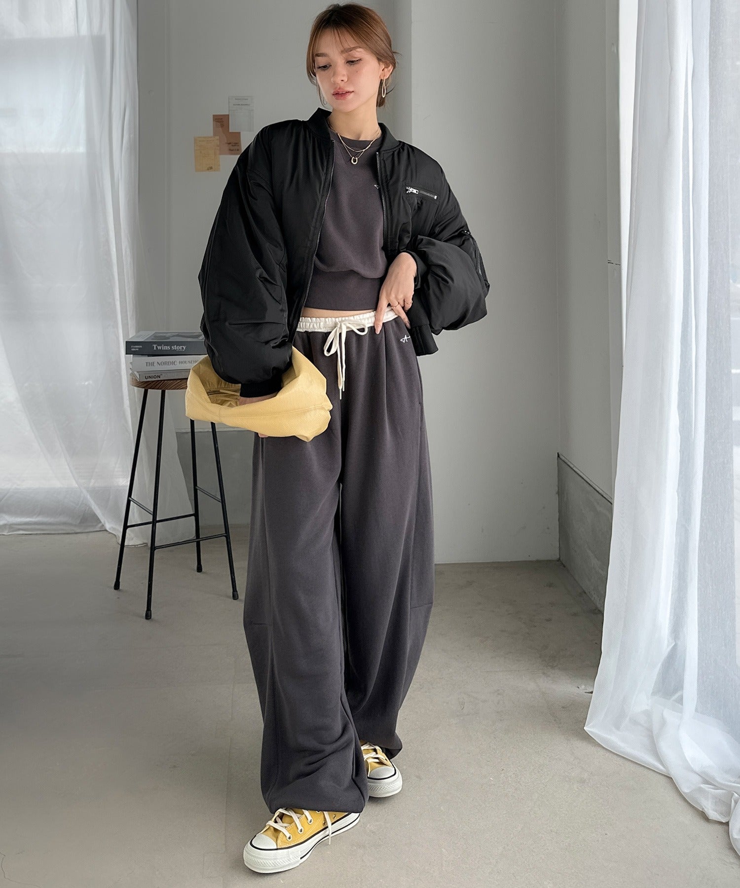ワイドパンツやスカートとのスタイリングも楽しめます。