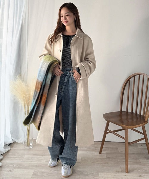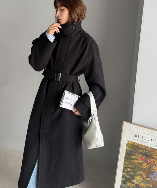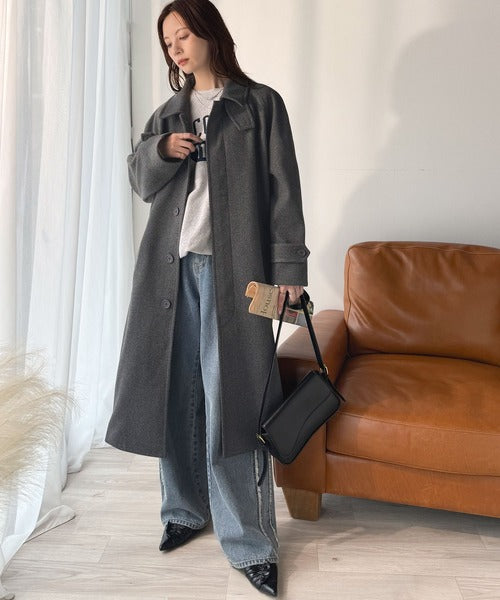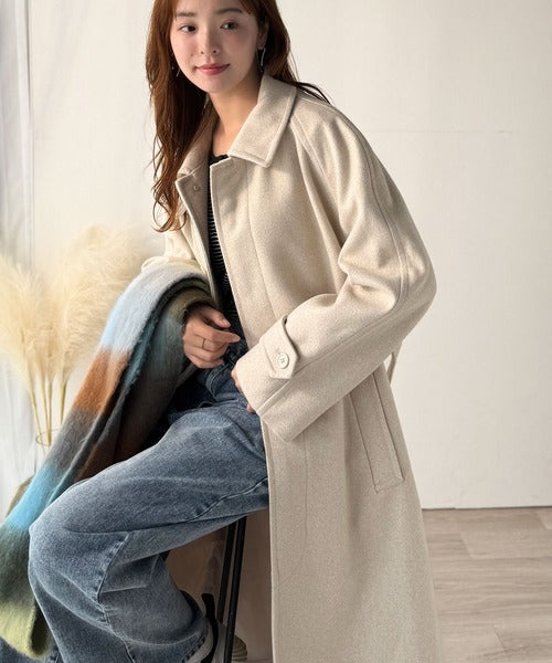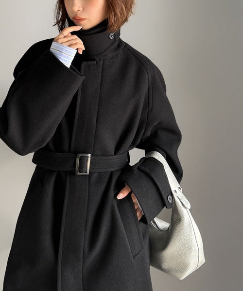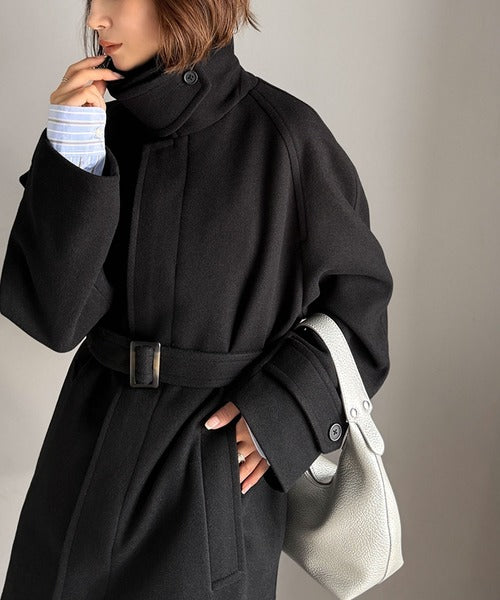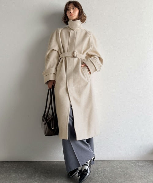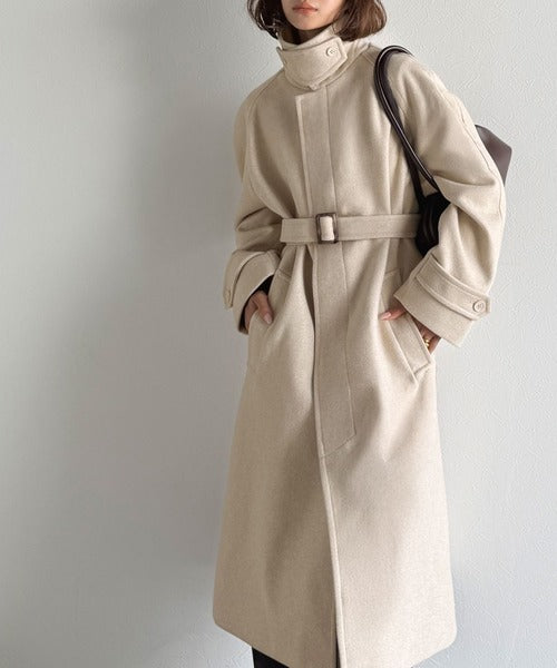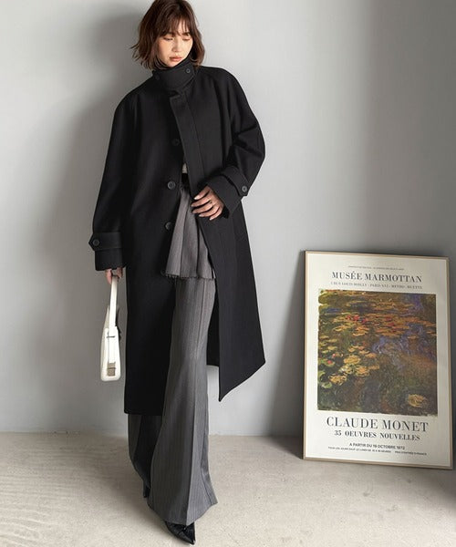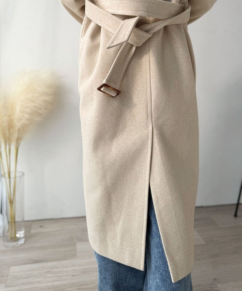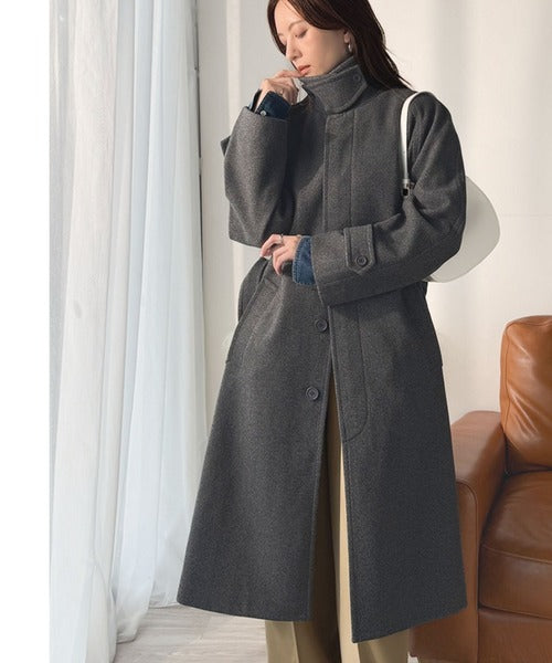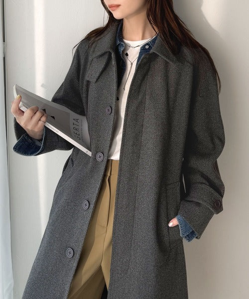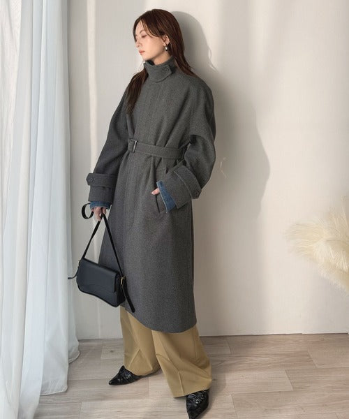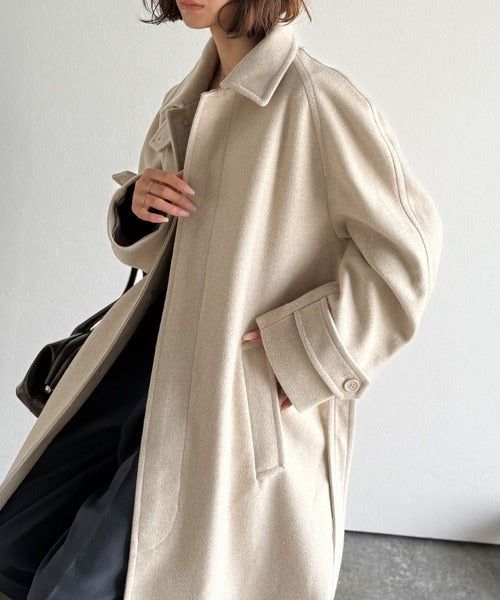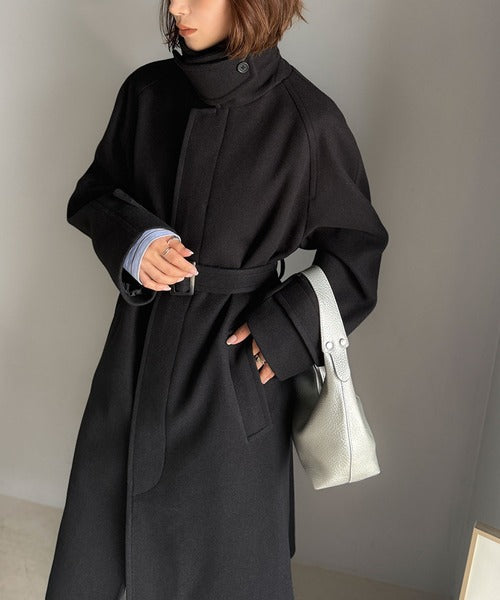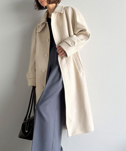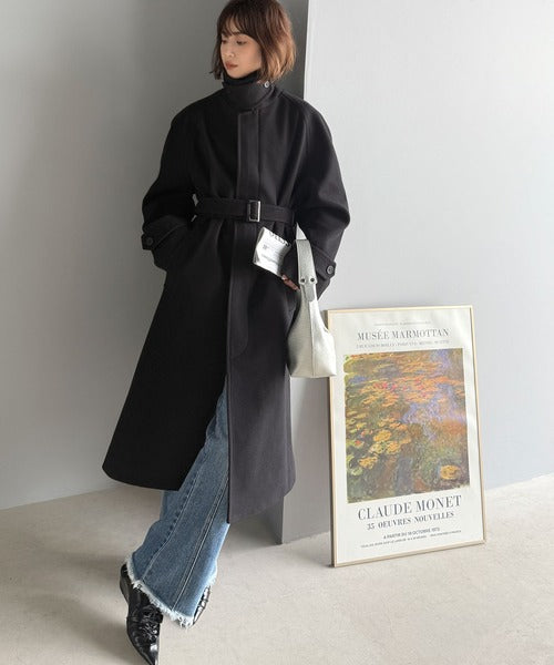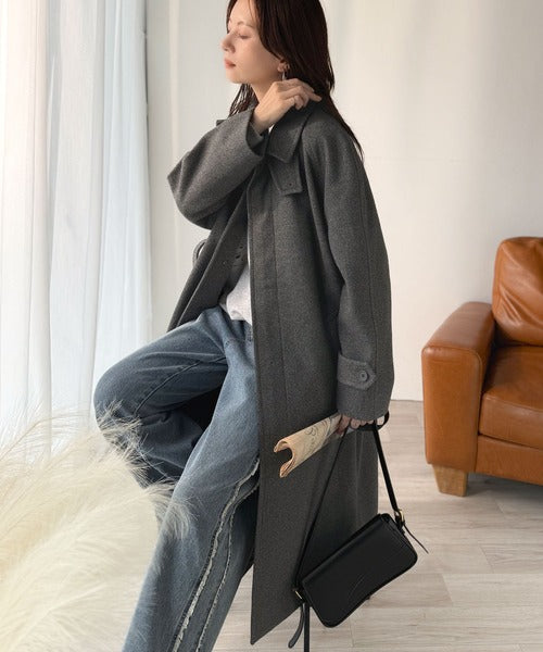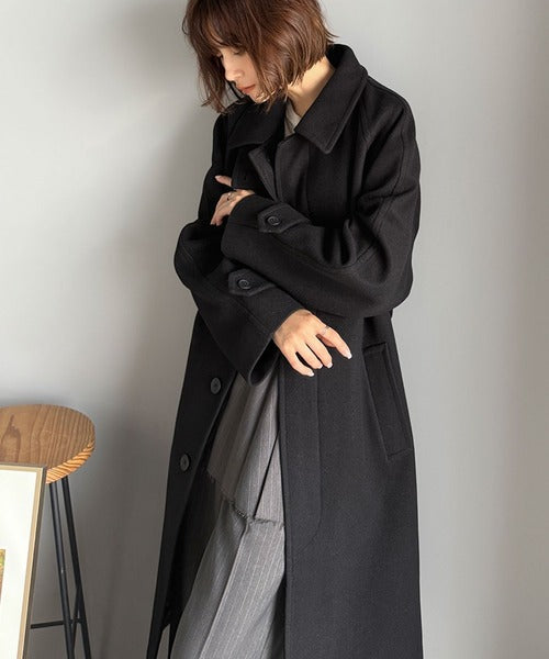 大人の魅力を引き立てる、上品な一着。ベルト付き比翼メルトンコート(ロング丈) ce1265007