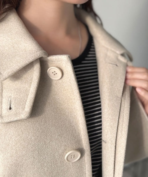 手触りの良いメルトン素材を使用した比翼メルトンコート。