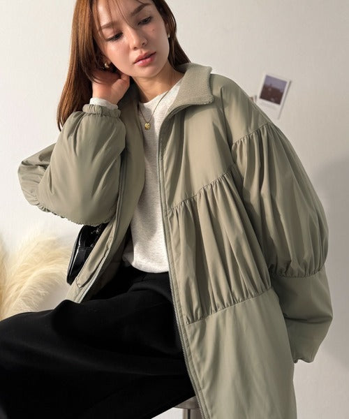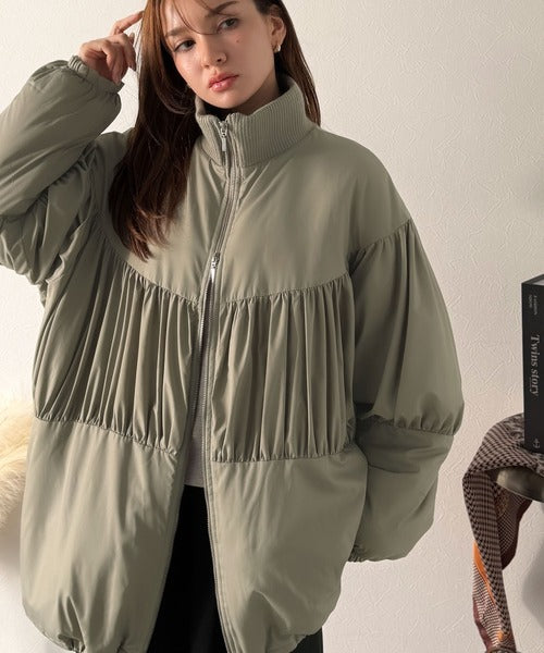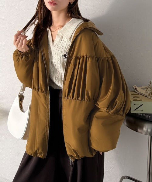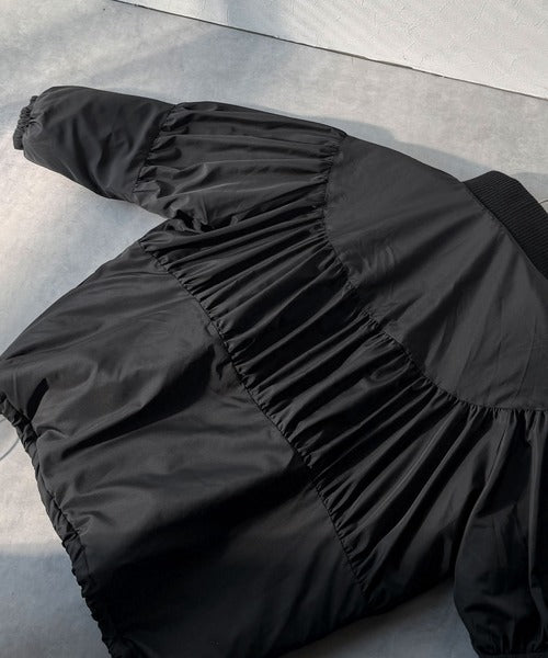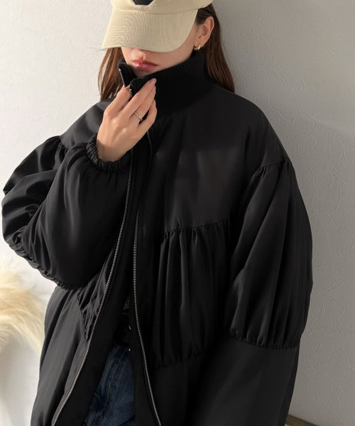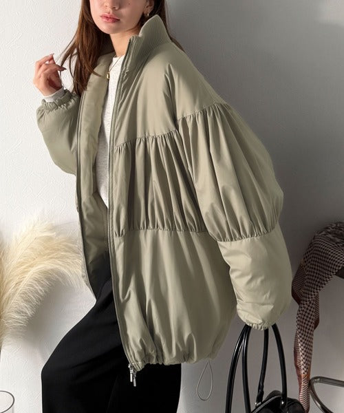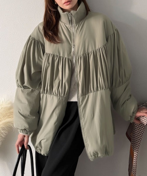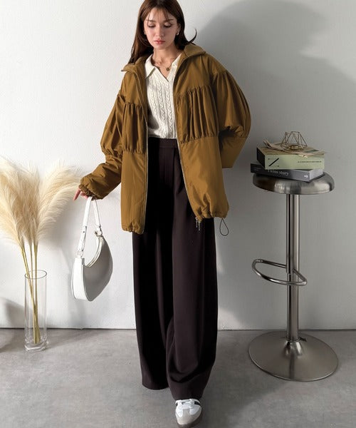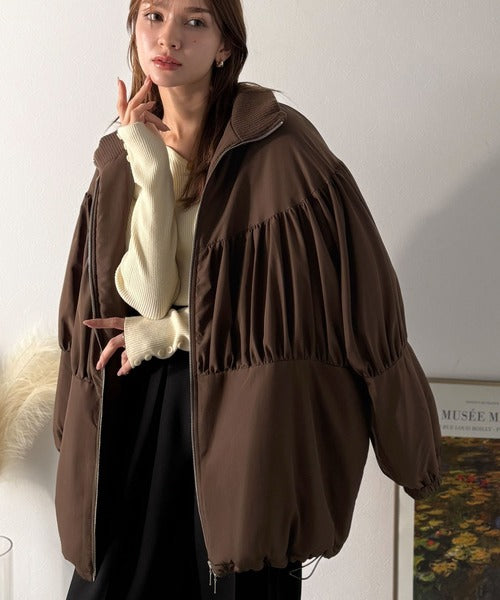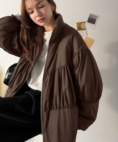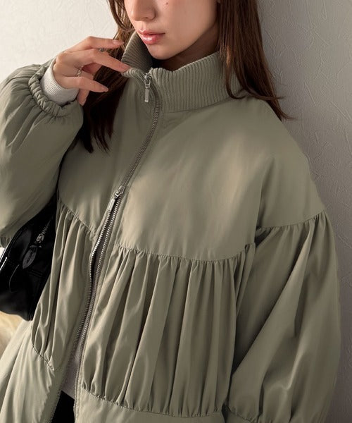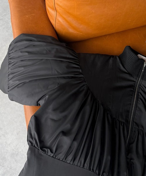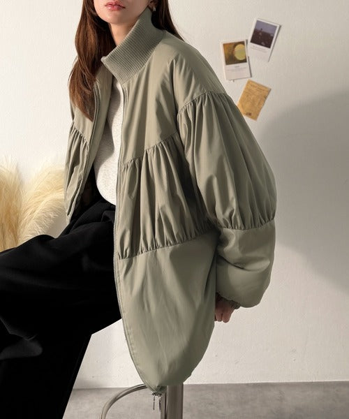 身頃と袖に施されたギャザーでふんわりとした立体感を演出するブルゾン。