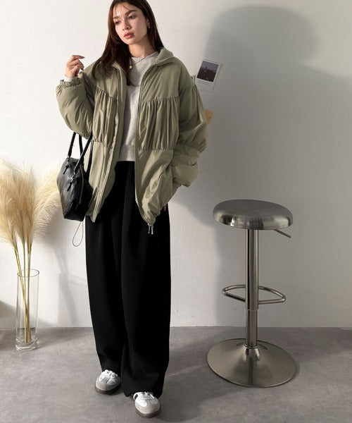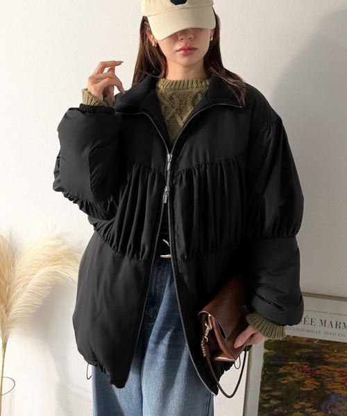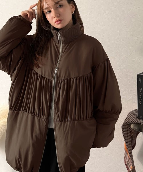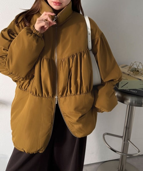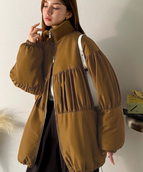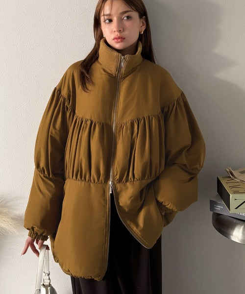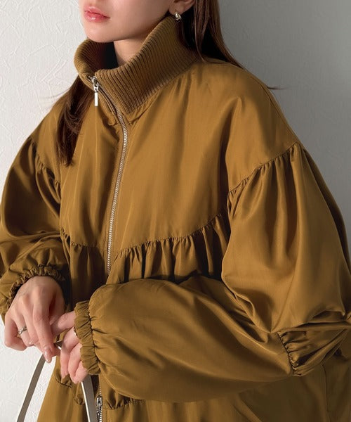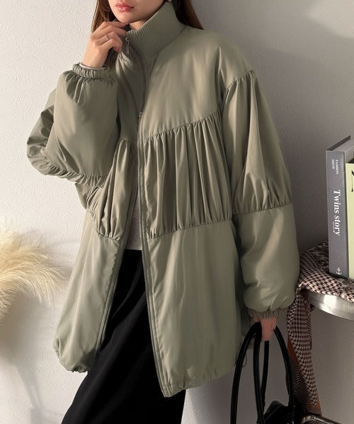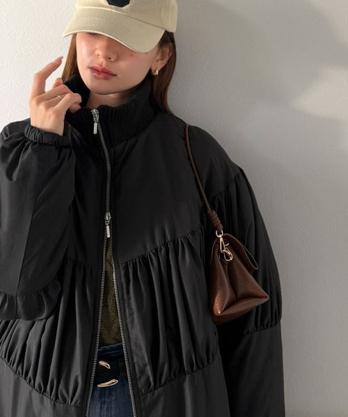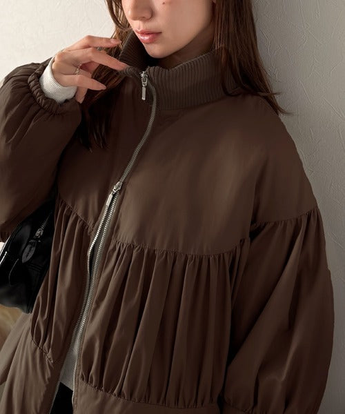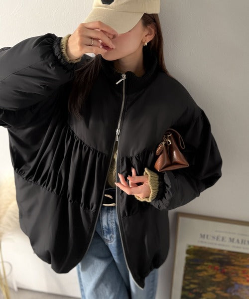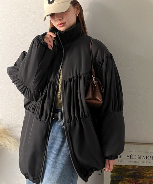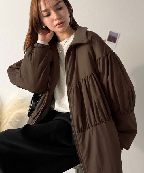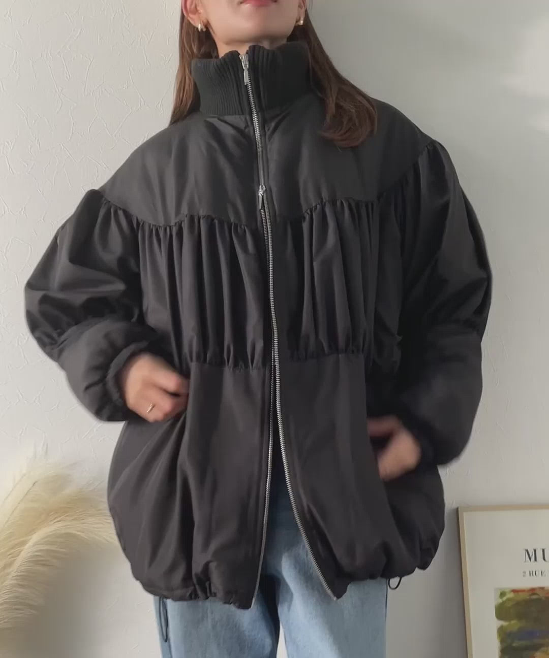 身頃と袖に施されたギャザーでふんわりとした立体感を演出するブルゾン。