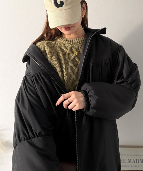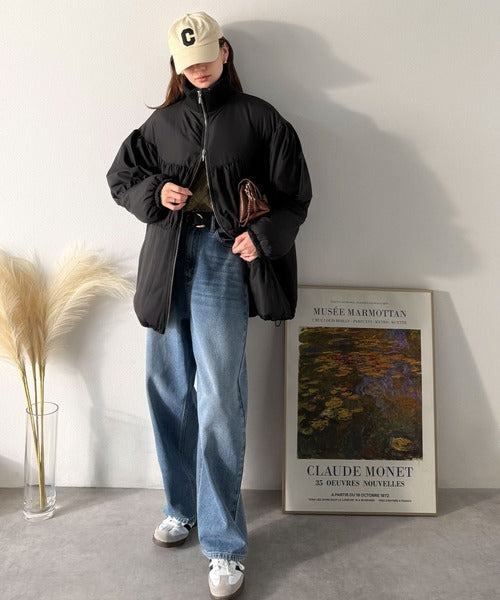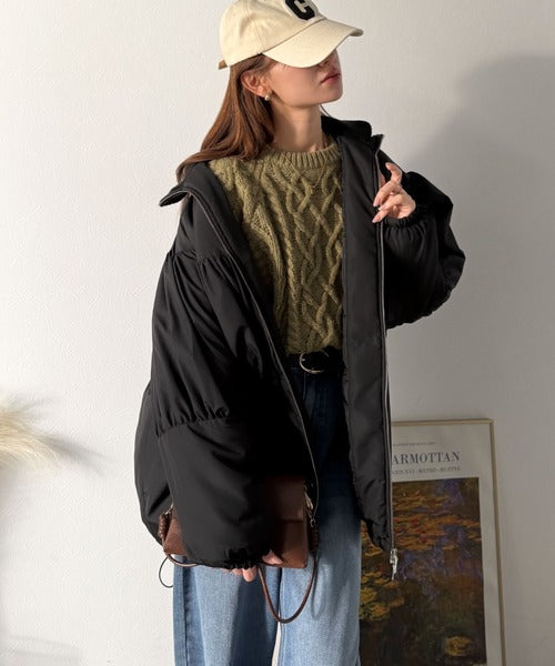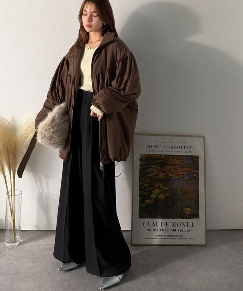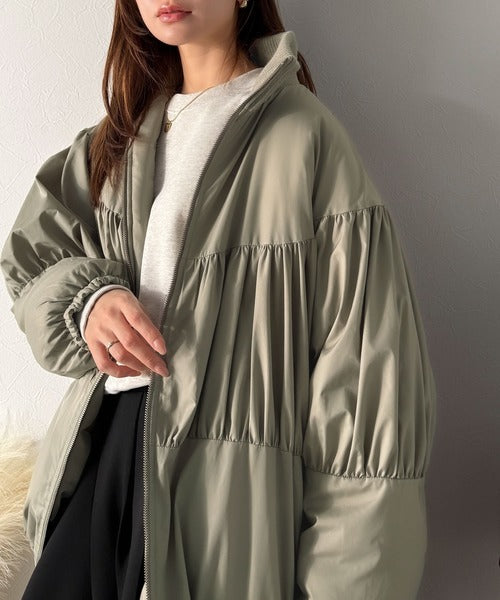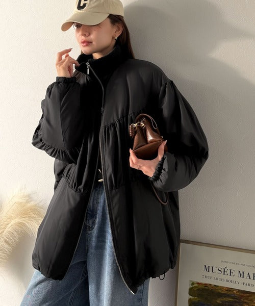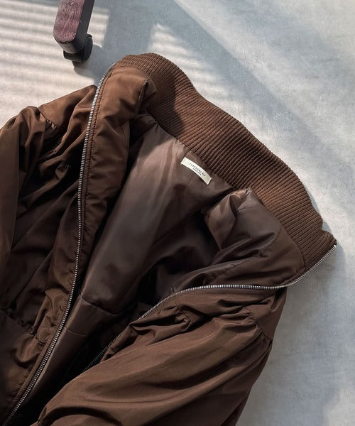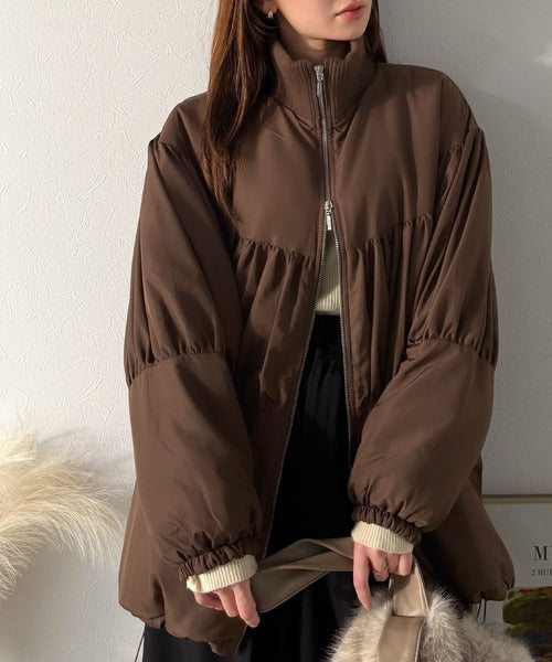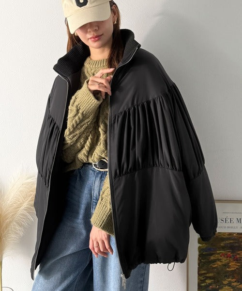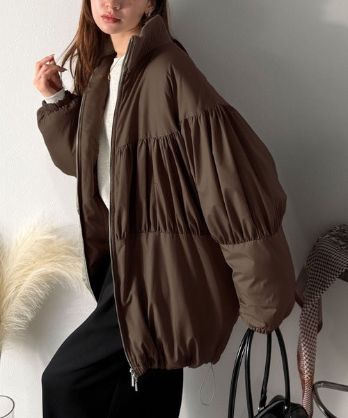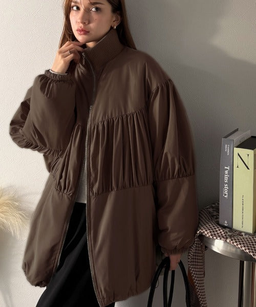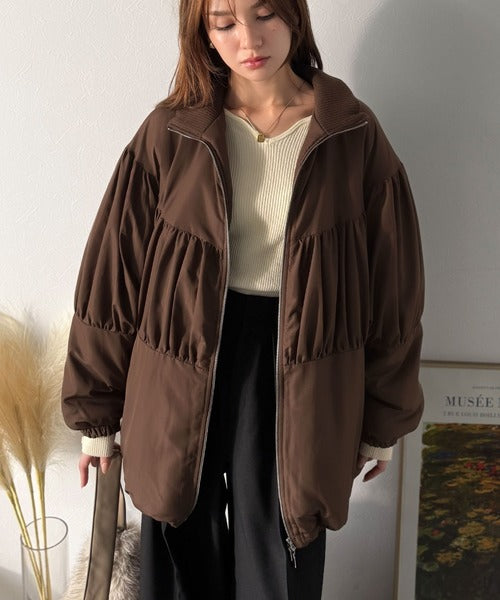 瞬間、旬顔。丸みシルエットでつくる大人の抜け感アウター。襟リブギャザーデザイン中綿ブルゾン ce1010517