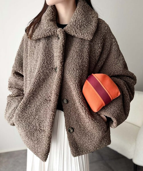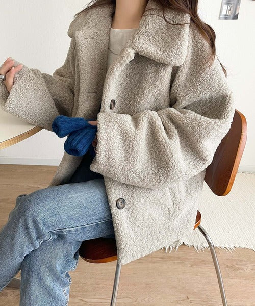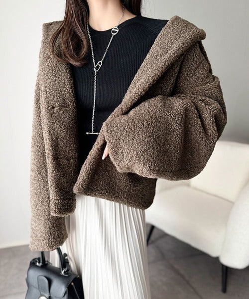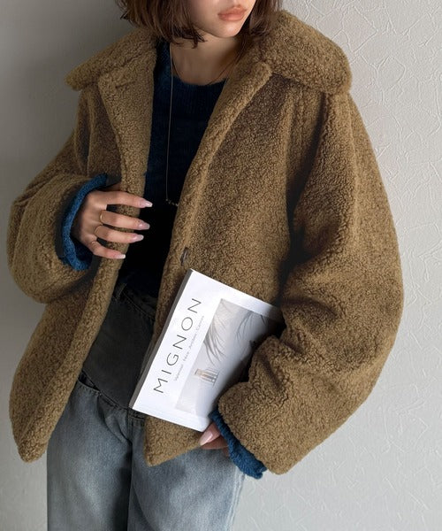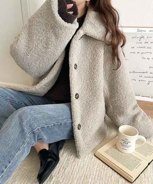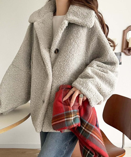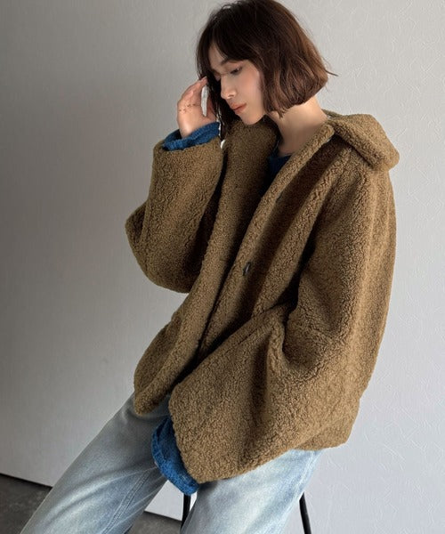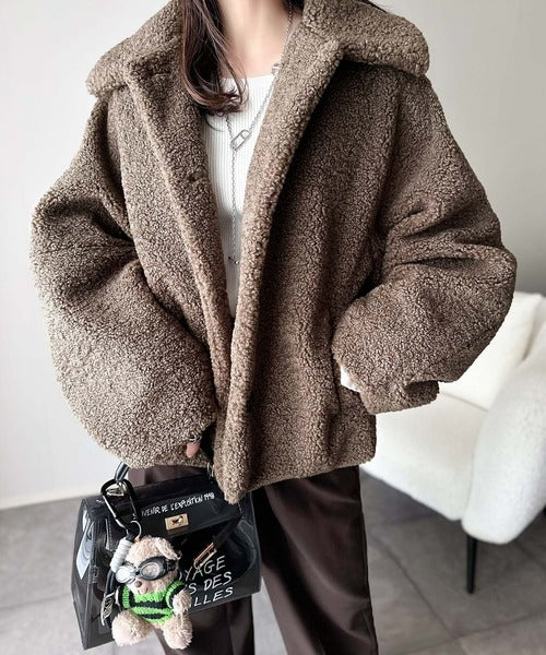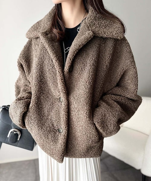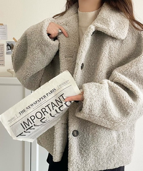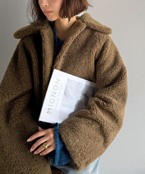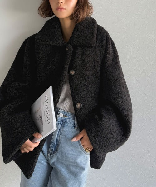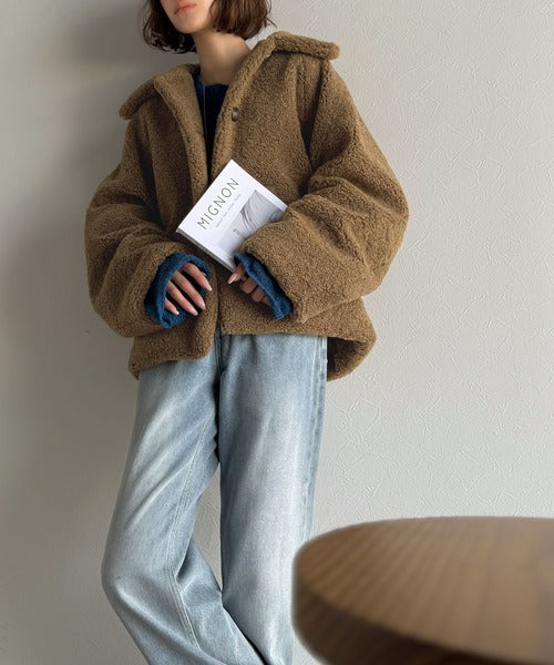 モコっとかわいく、冬支度♪ふんわり軽やか×暖かみたっぷり!コクーンシルエットテディベアボアブルゾン ce1240104