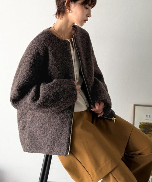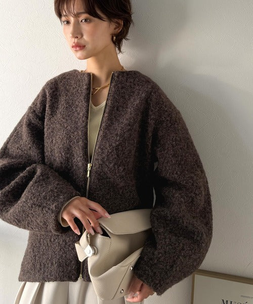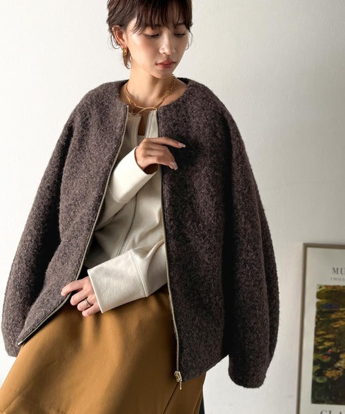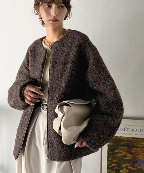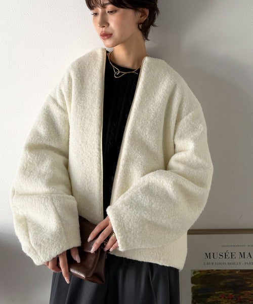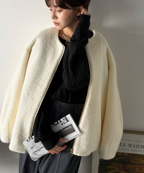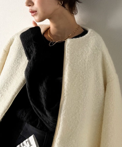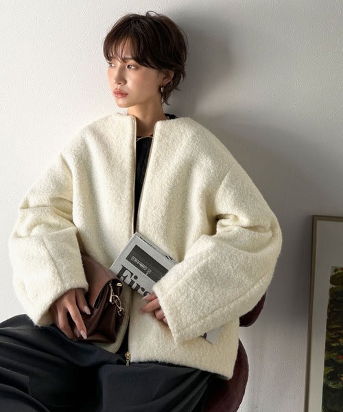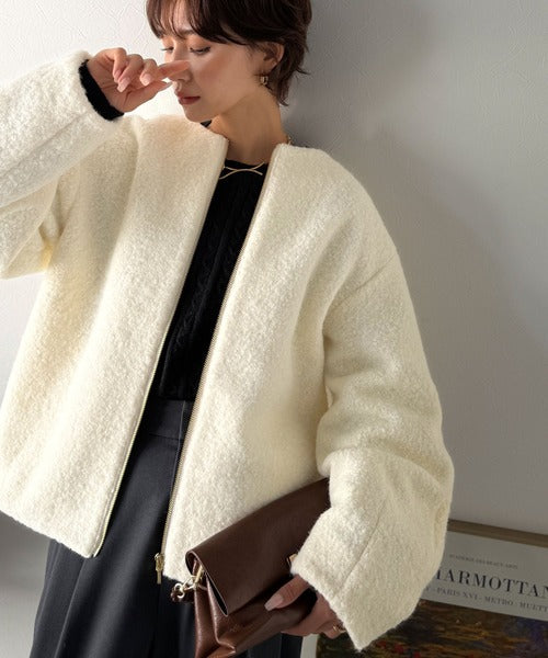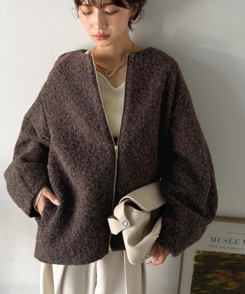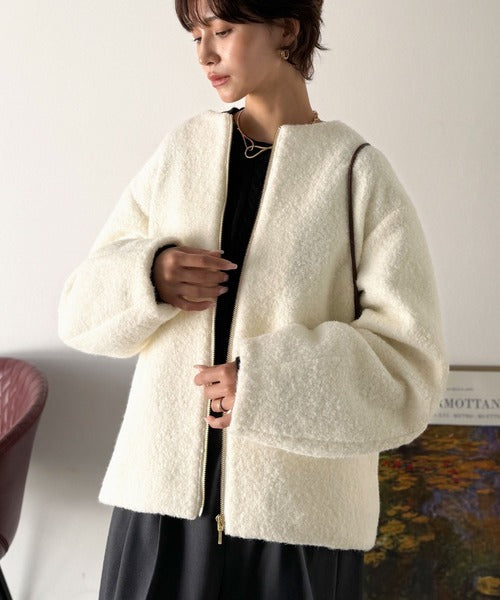 【Classical Evon】上品さと抜け感を兼ね備えた、大人のためのアウター。軽やかブークレノーカラージャケット ev1110138