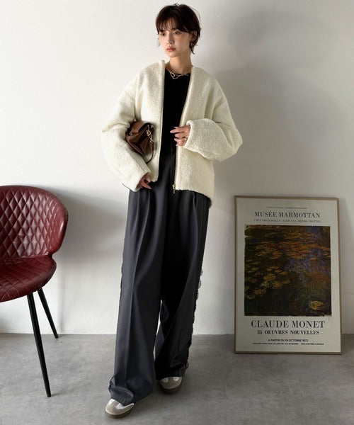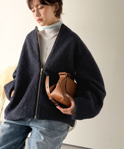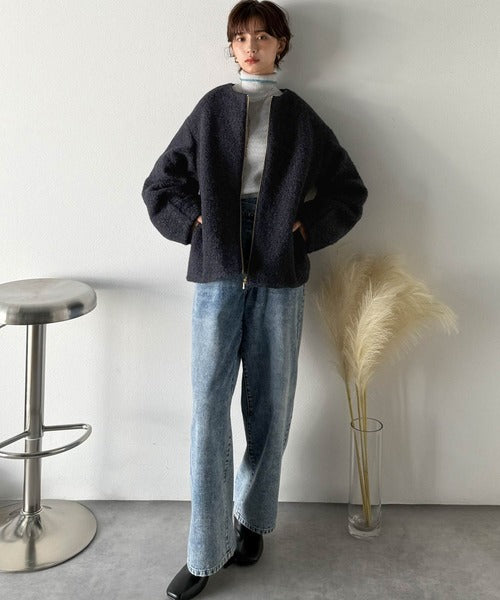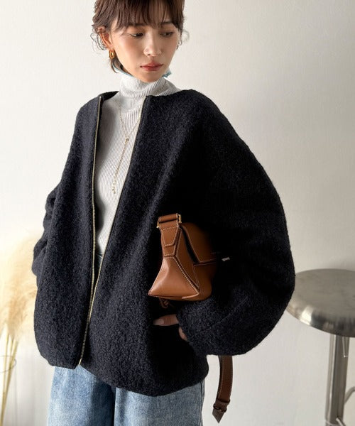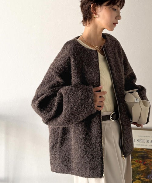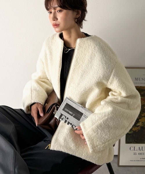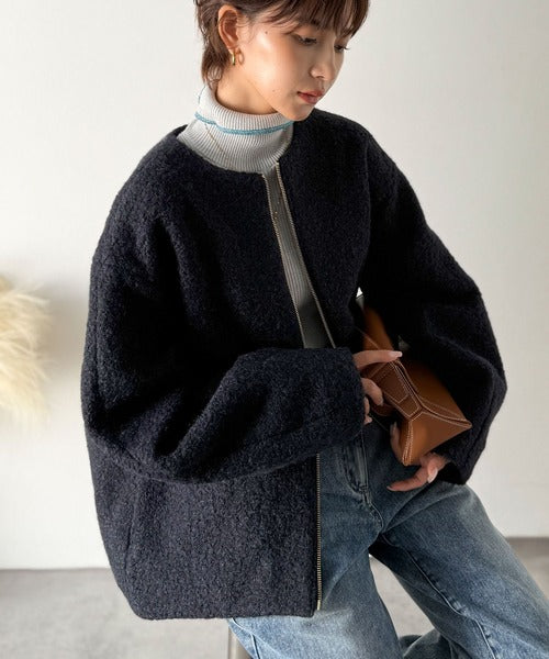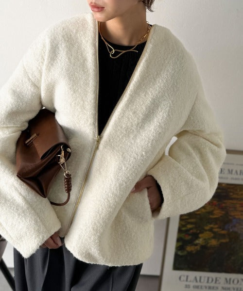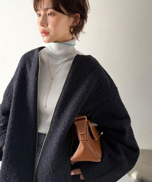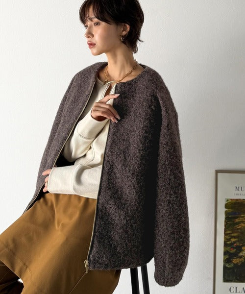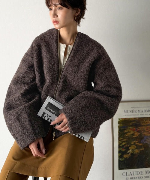 【Classical Evon】上品さと抜け感を兼ね備えた、大人のためのアウター。軽やかブークレノーカラージャケット ev1110138