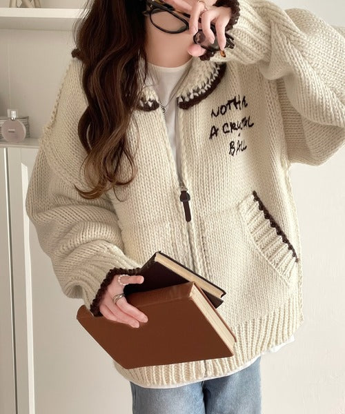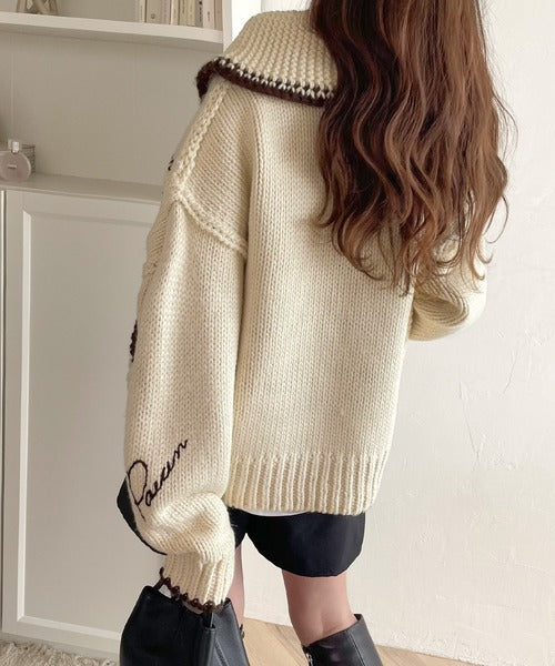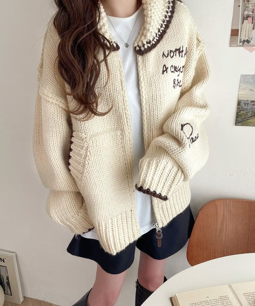 暖かみのある太めの糸でざっくりとした風合いのカウチンニットを、コーデしやすいデザインにブラッシュアップ。