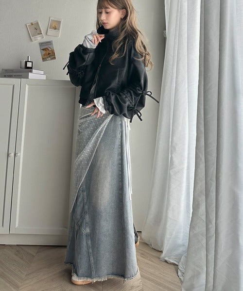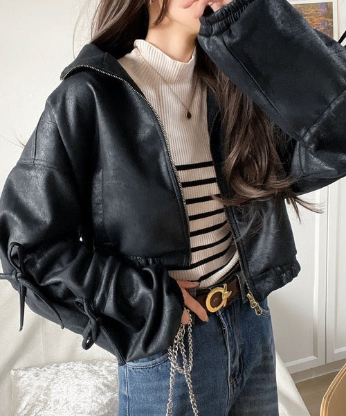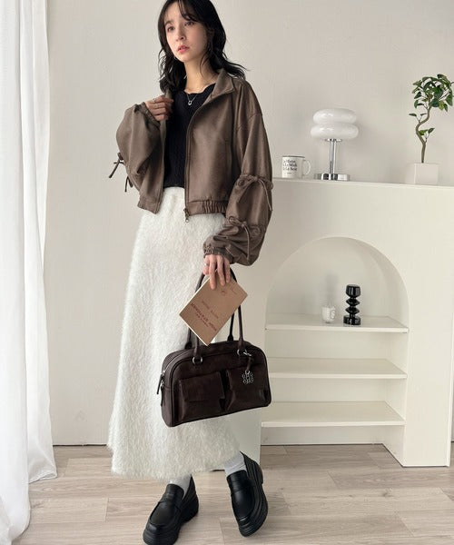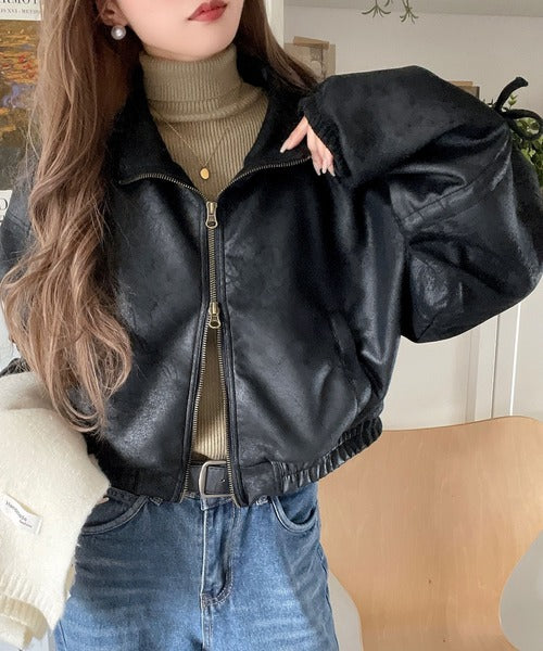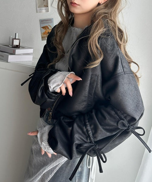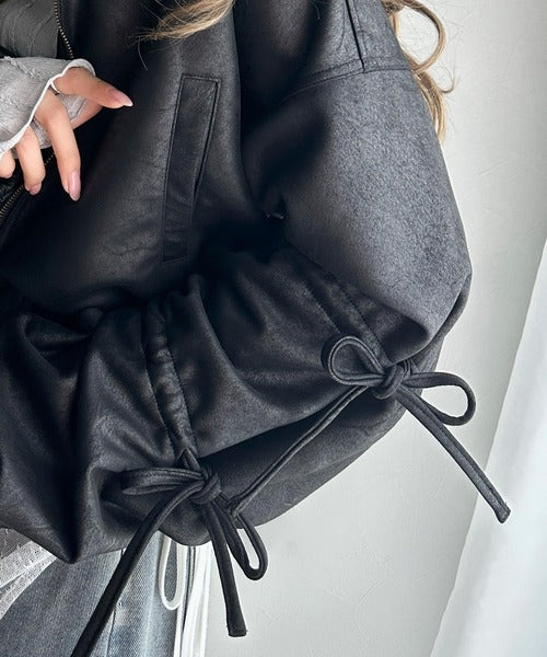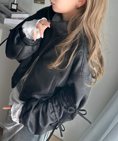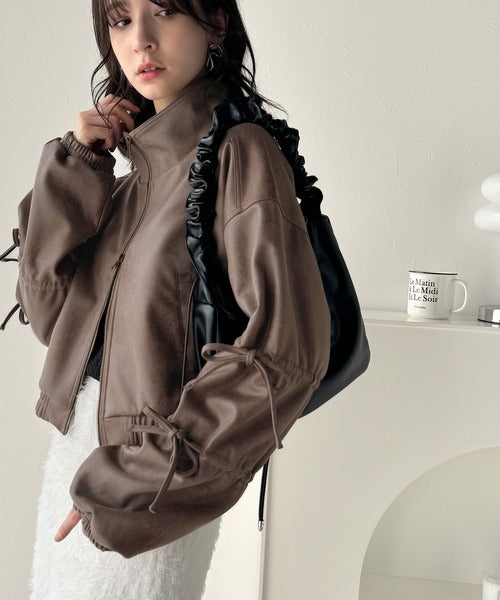 【mily bilet】ヴィンテージ感漂う。スウェードライクリボンデザインダブルジップブルゾンジャケット mi1269001