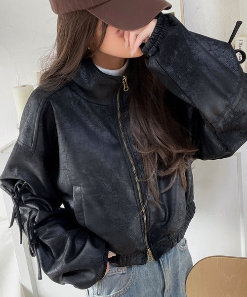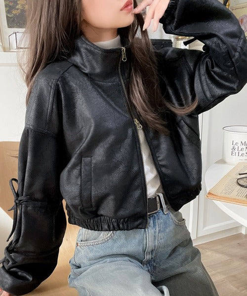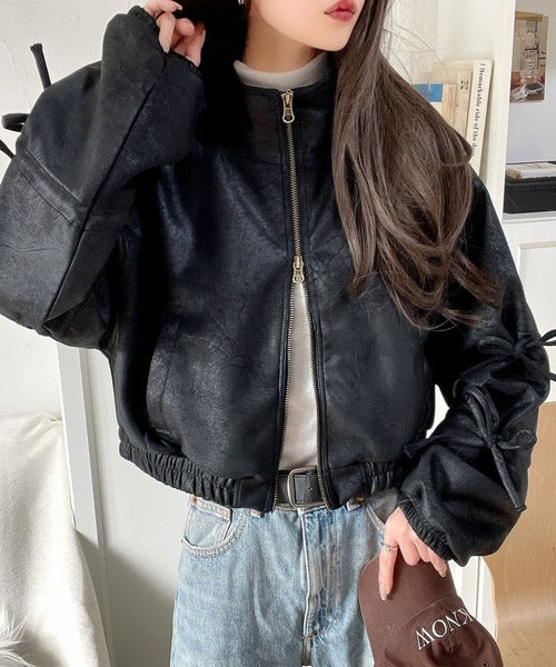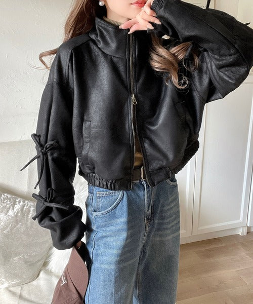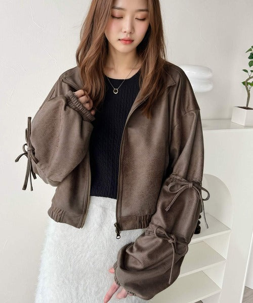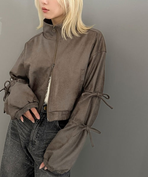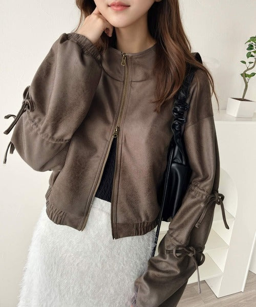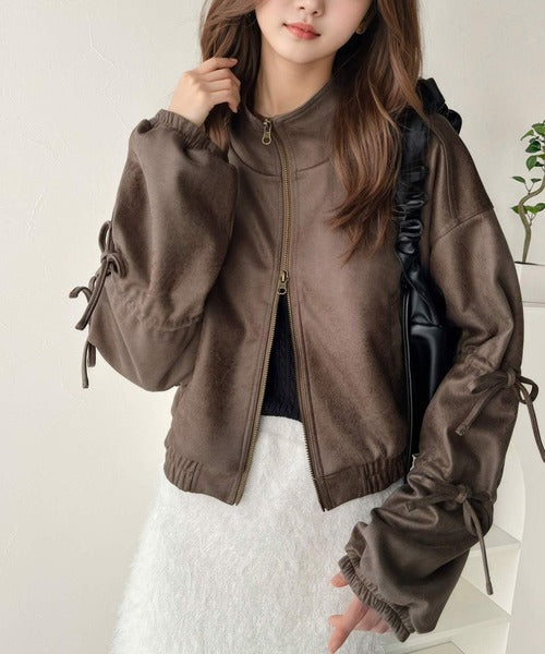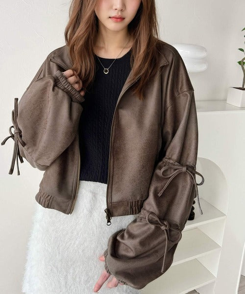 ヴィンテージスウェードライクリボンデザインブルゾンジャケットの登場!