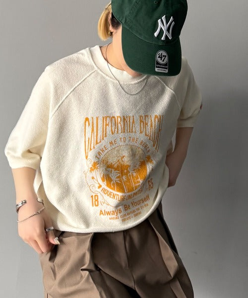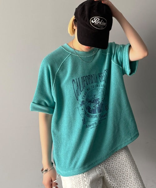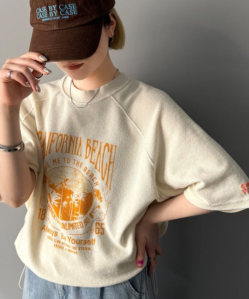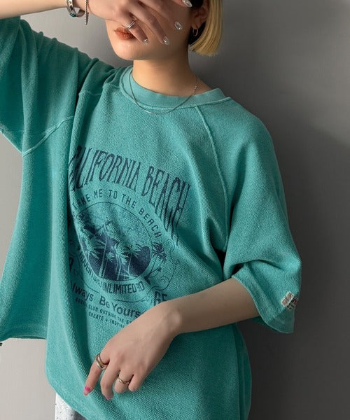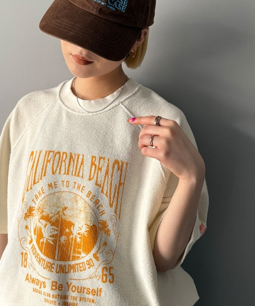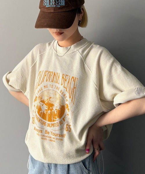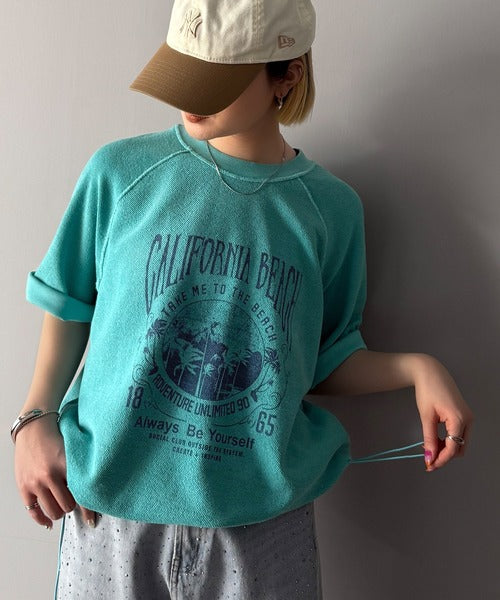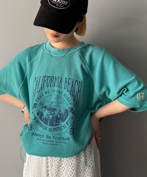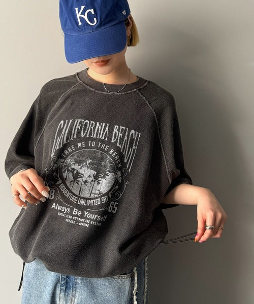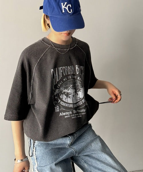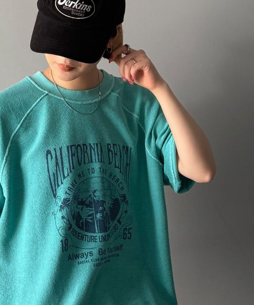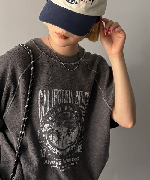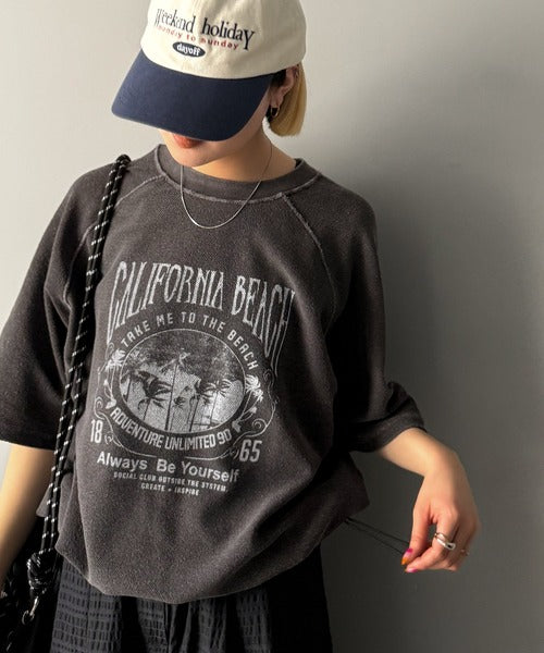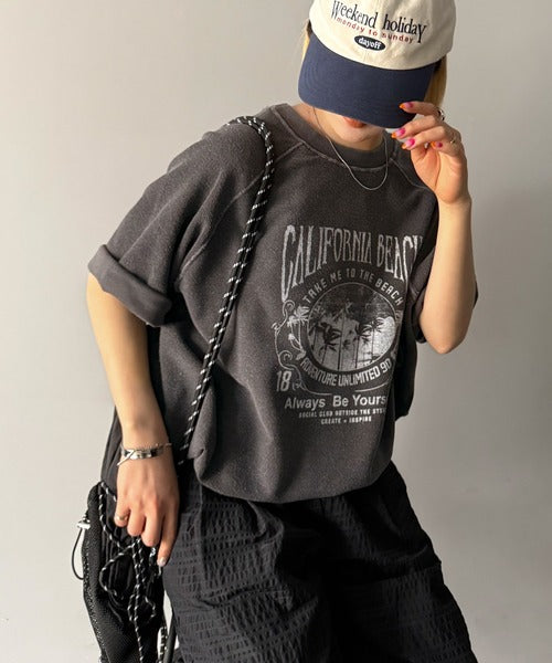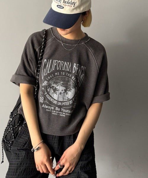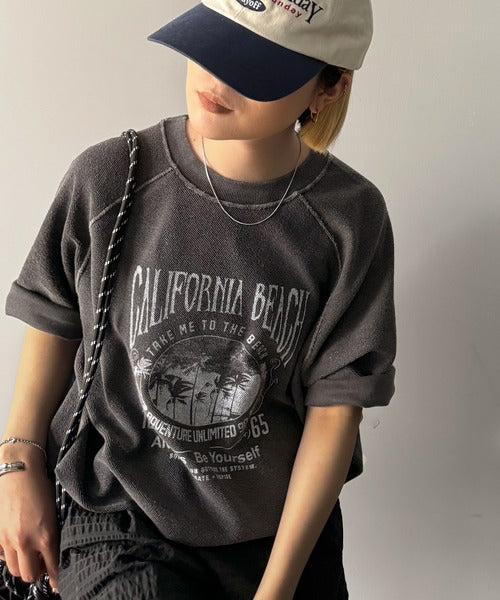 ピグメントプリントのヴィンテージ風デザインが印象的な半袖スウェット。