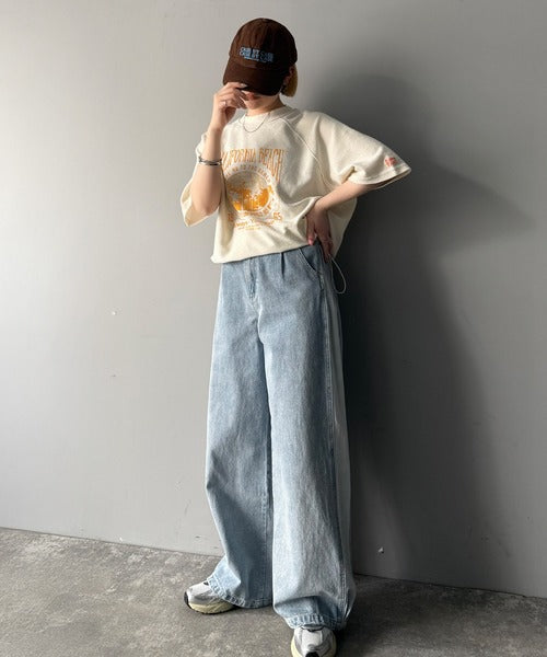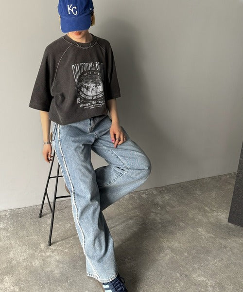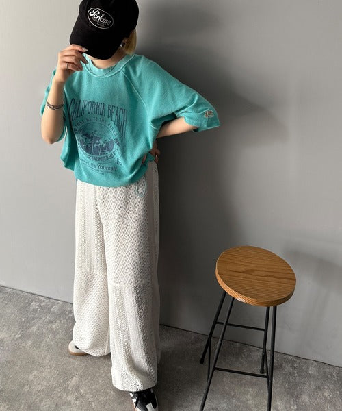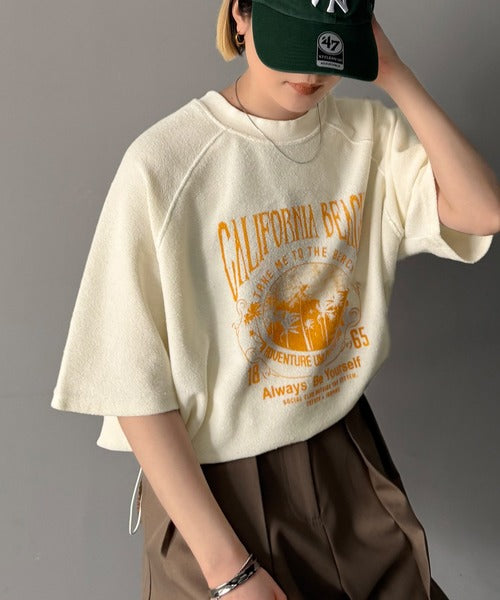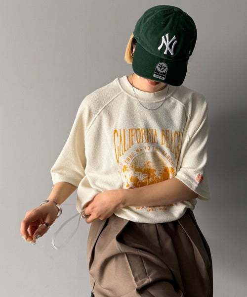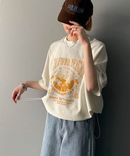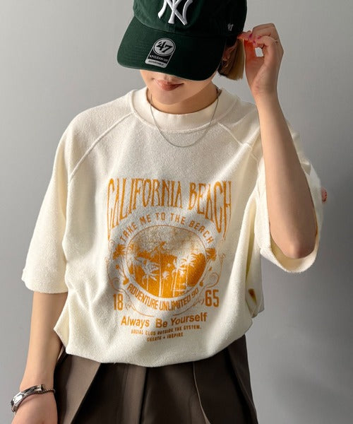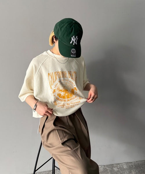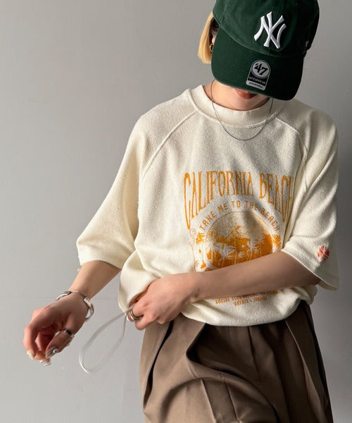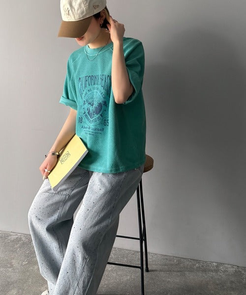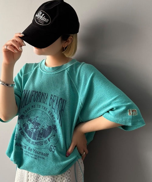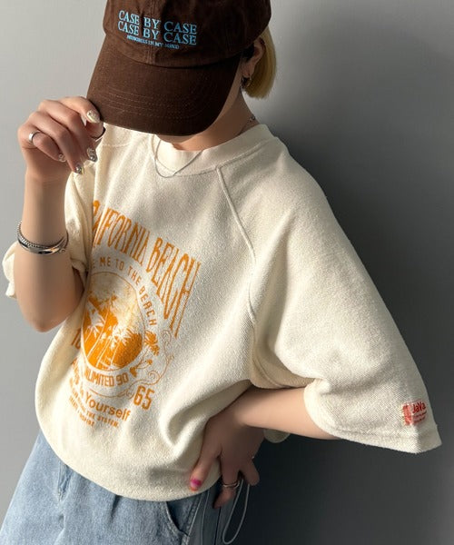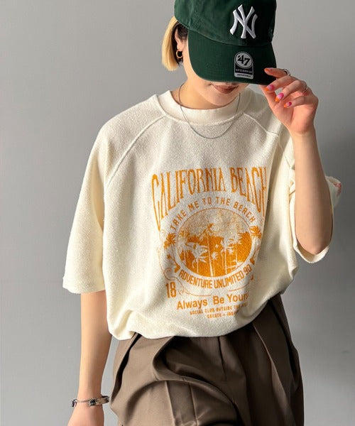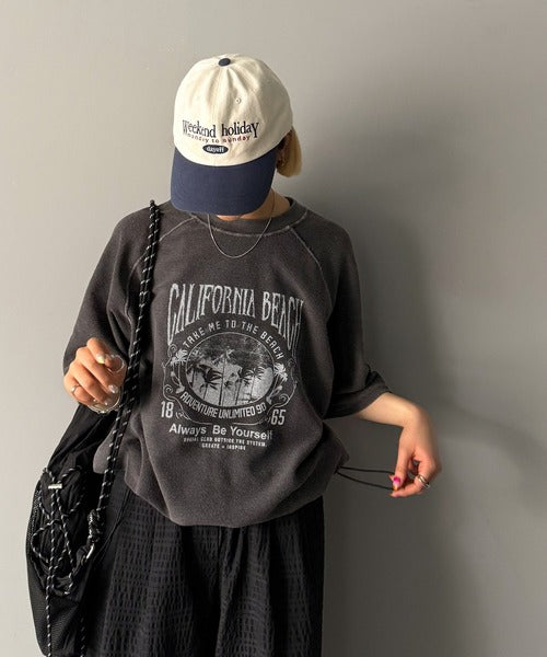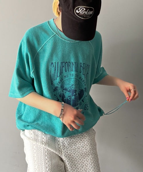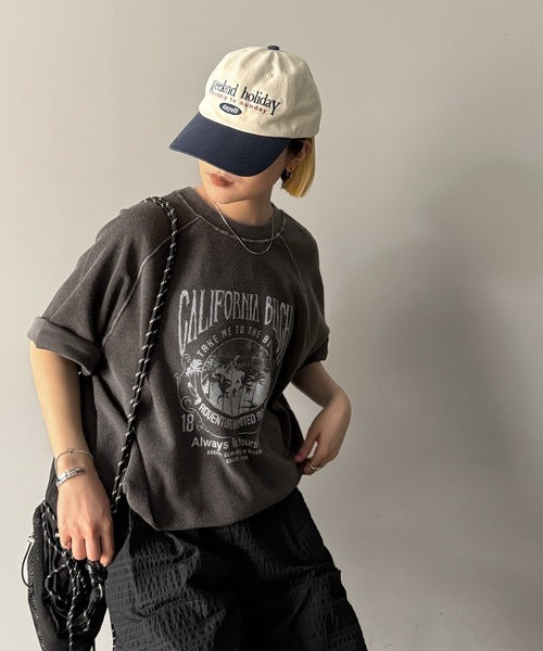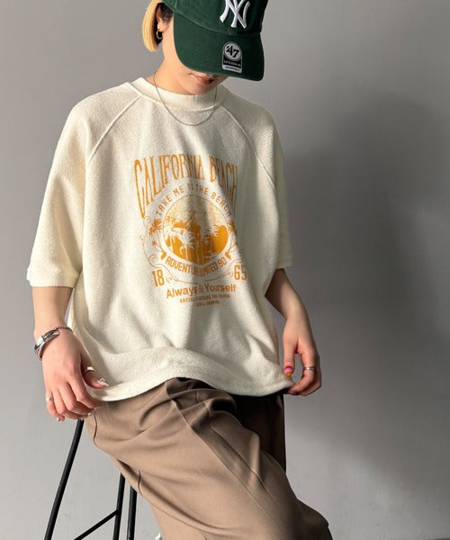 ピグメントプリントのヴィンテージ風デザインが印象的な半袖スウェット。