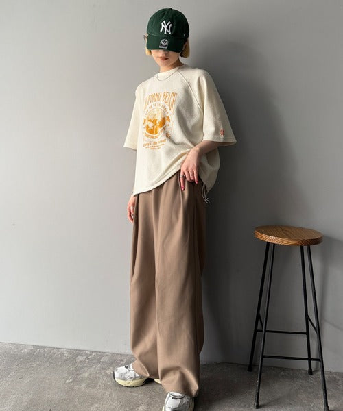 《JaVaジャバコラボ》こなれ感叶う大人のゆるスタイル。裏使いヴィンテージライクピグメントプリント半袖スウェット(トップス) jv1029122