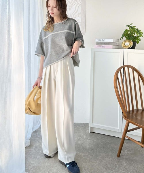 ダメージ加工と切りっぱなしデザインが今っぽい裏毛プルオーバー。程よい丈感はインでもアウトでもキマる絶妙なバランスで、大人カジュアルにキマる1枚◎