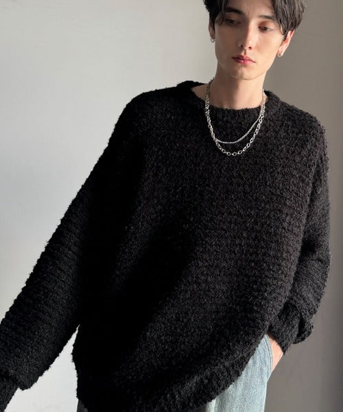 「ブークレー糸クルーネックニットトップス(長袖)/Boucle yarn crew neck knit top」