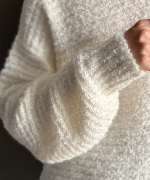 ブークレー糸を使用した柔らかなニット素材で、ふんわりとした膨らみが特徴。