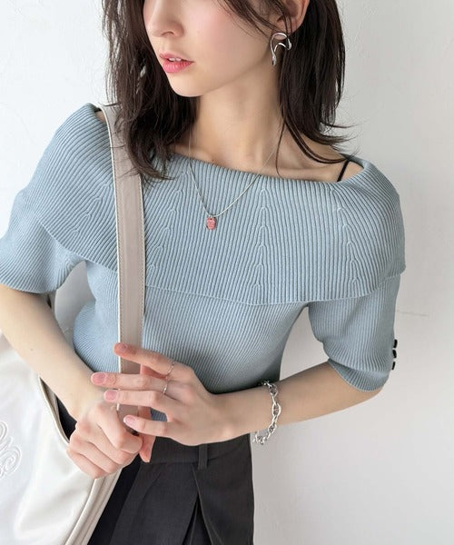 大人フェミニンな着こなし。オフショルリブニット(半袖) ce1020234
