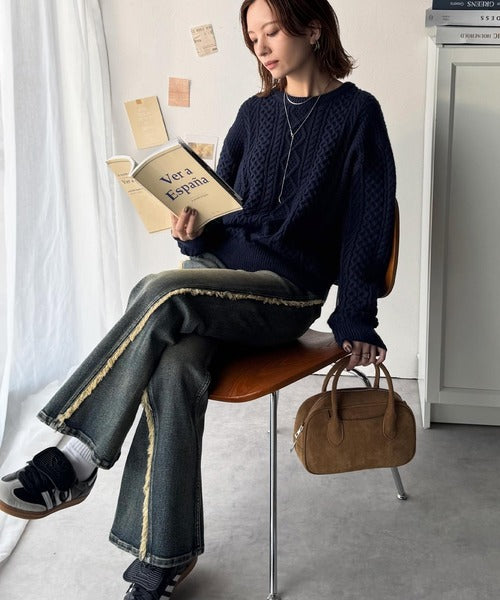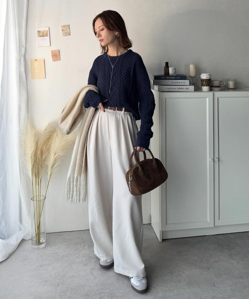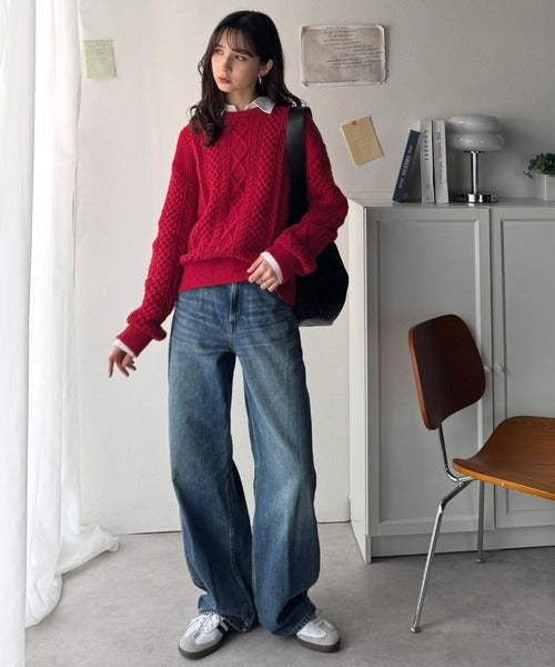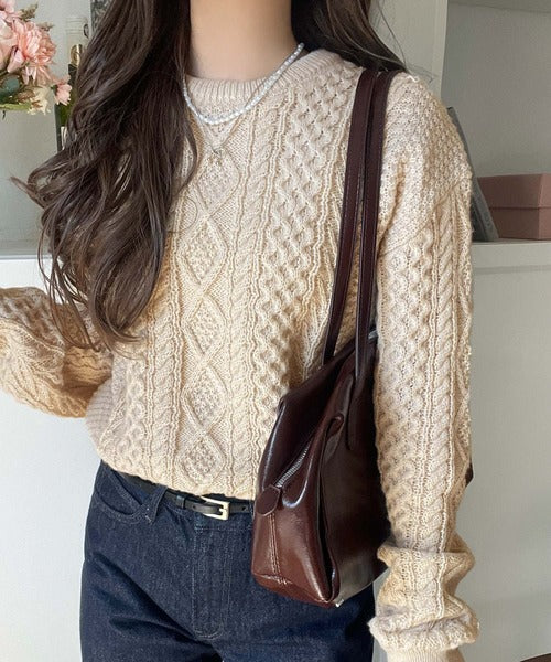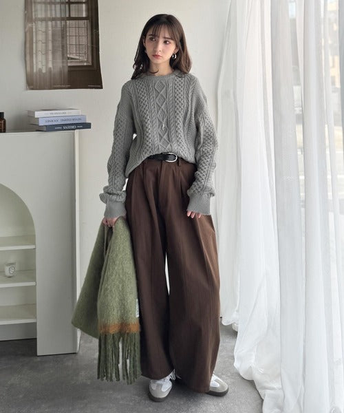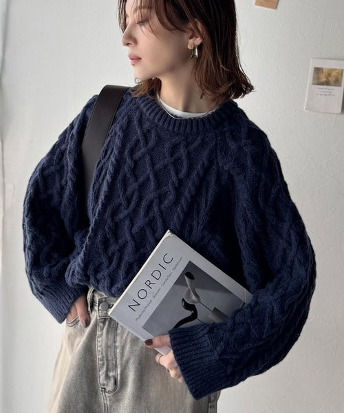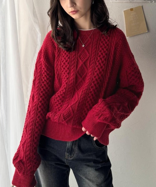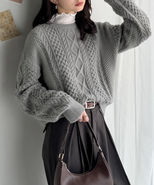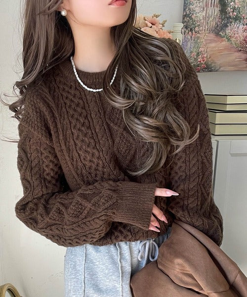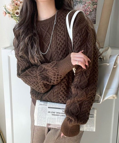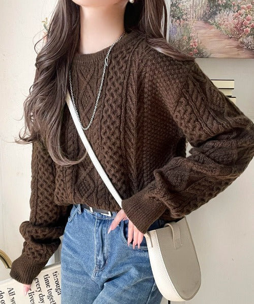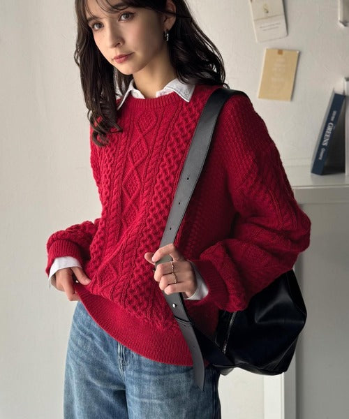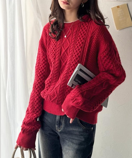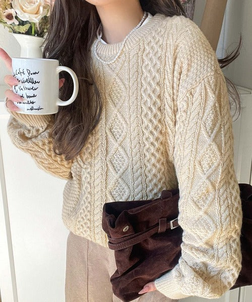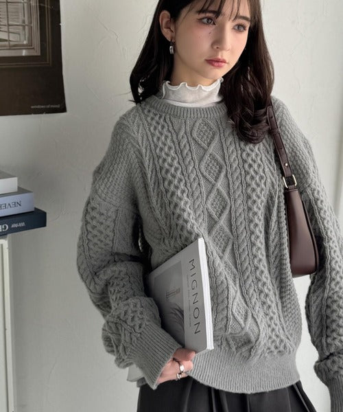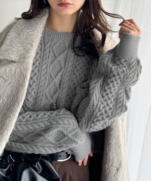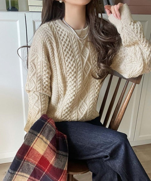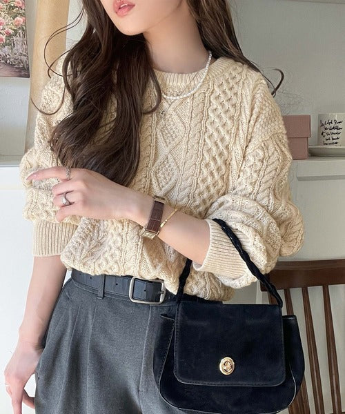 クラシカルなアラン編みが映える♪秋冬ムードをグッと高めるケーブルニットセーター ce1020297