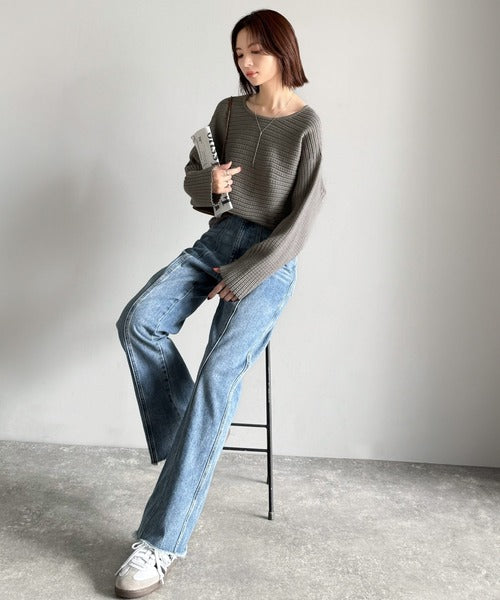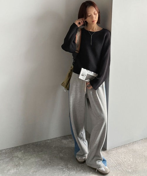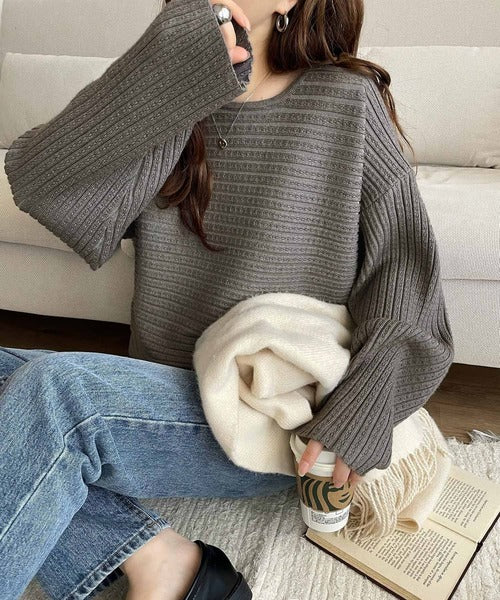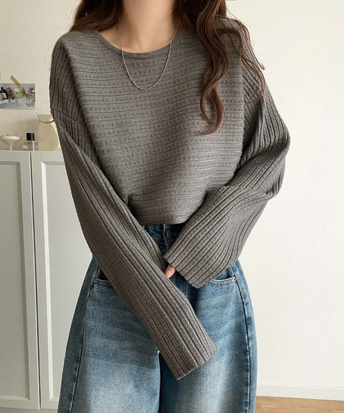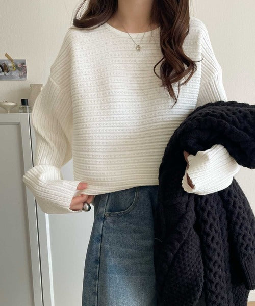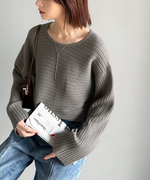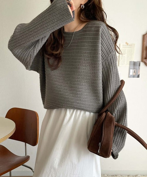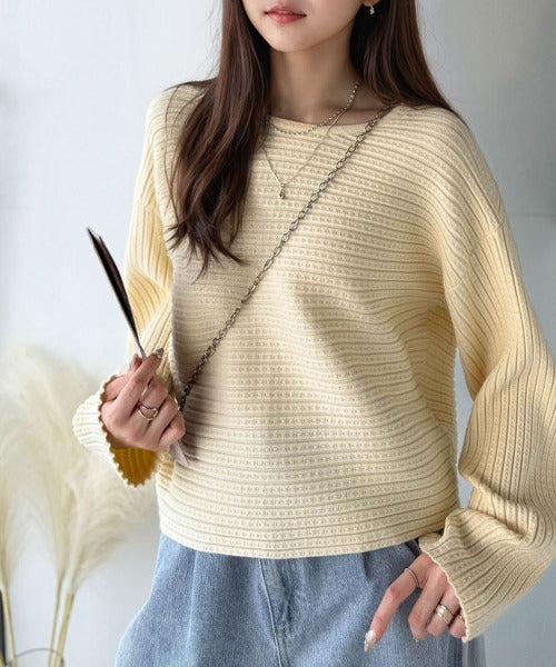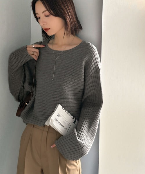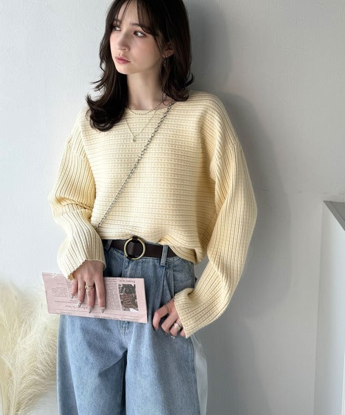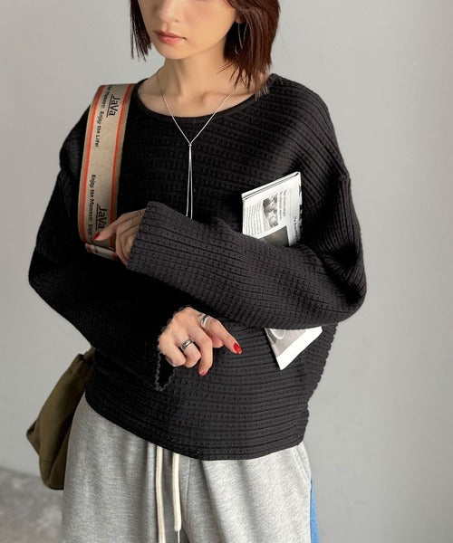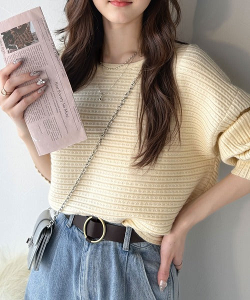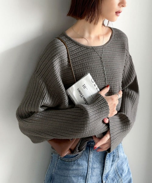 ゆるリブの抜け感。ドルマン袖クルーネックニットトップス(長袖) ce1020304