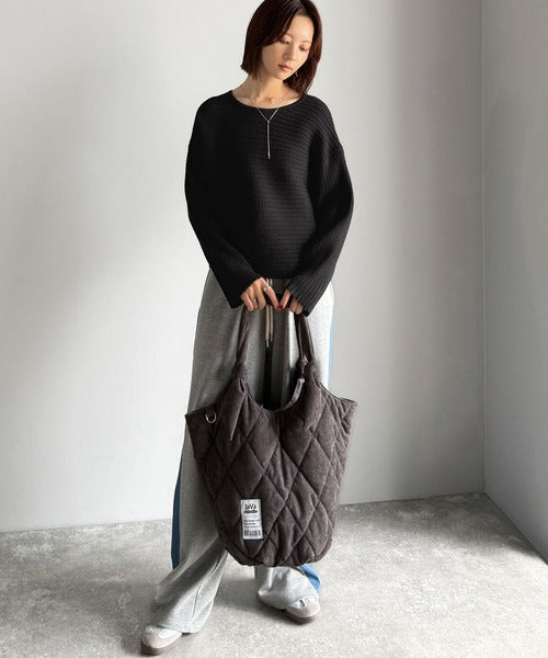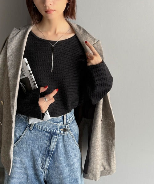 しっかりとした表面感のある横リブ編地を使用し、