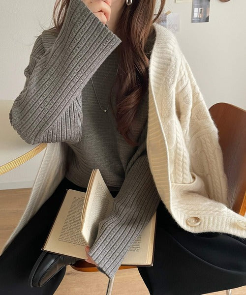 シンプルだけどこだわりデザインのリブ編みプルオーバー。