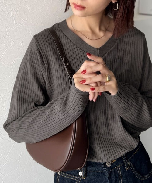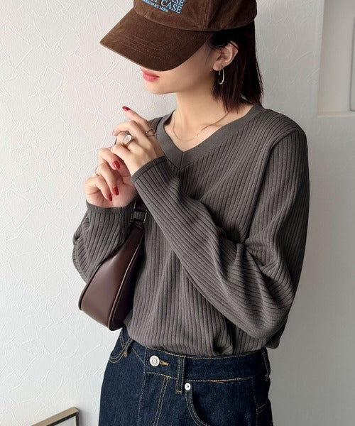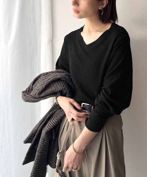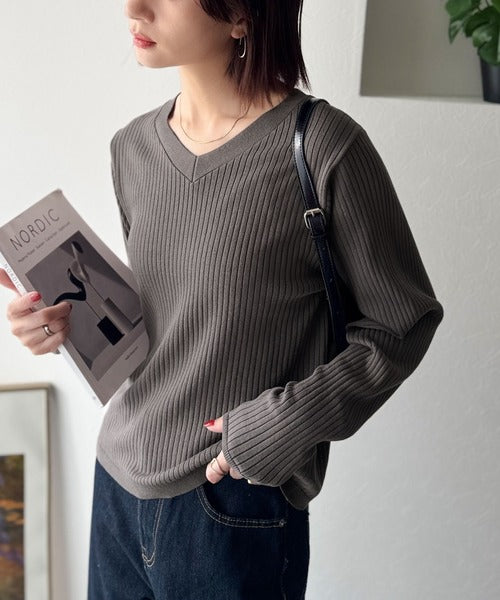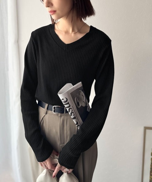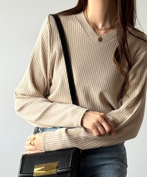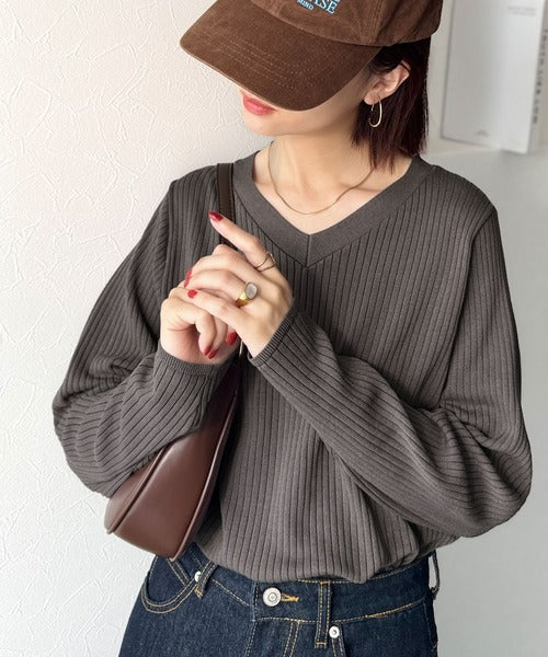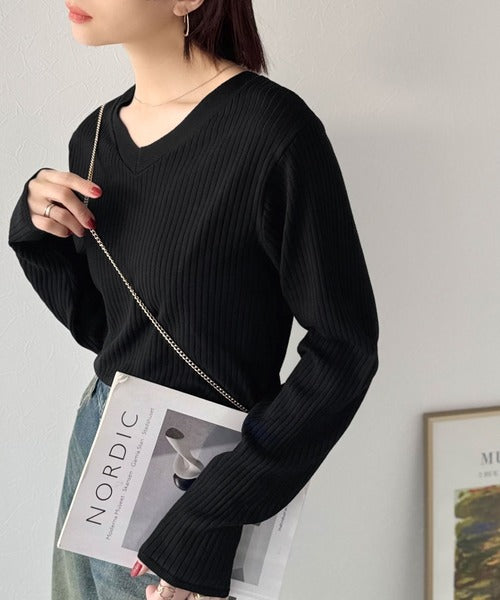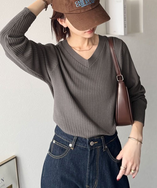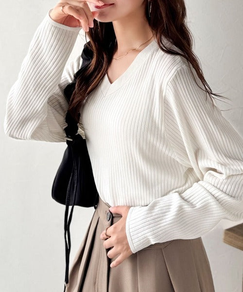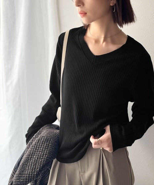 デコルテ美人。着映えVネックシンプルリブニット(長袖) ce1050335