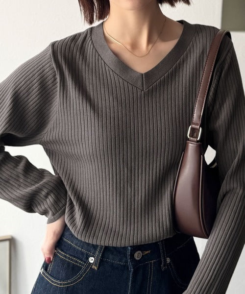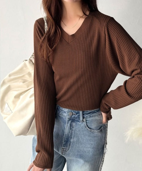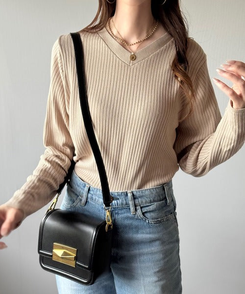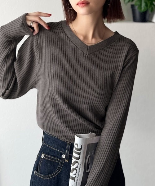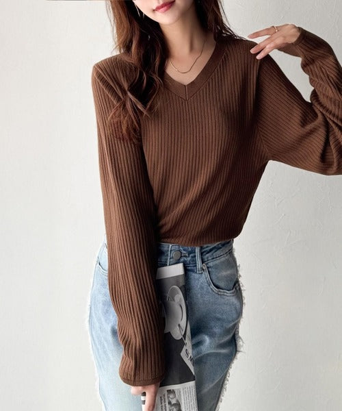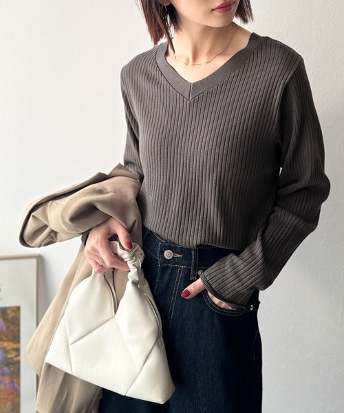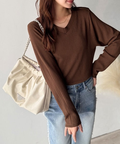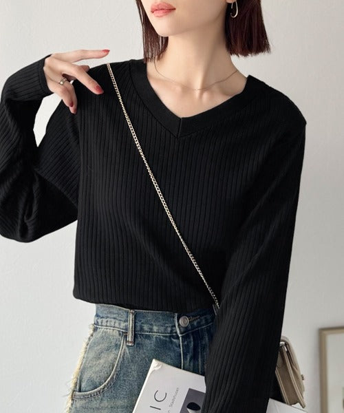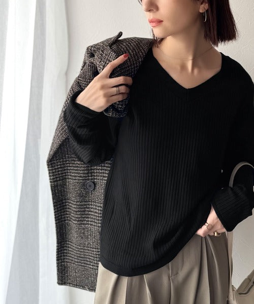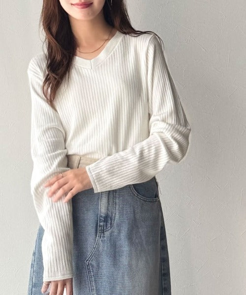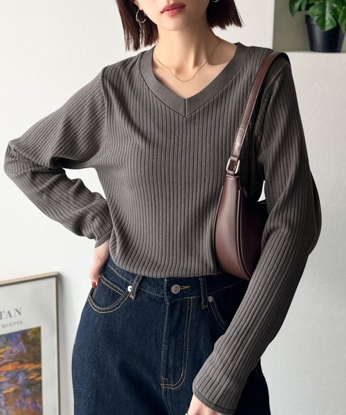 デコルテ美人。着映えVネックシンプルリブニット(長袖) ce1050335