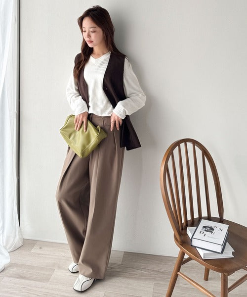 テーパードパンツやスラックスと合わせてオフィススタイルに。
