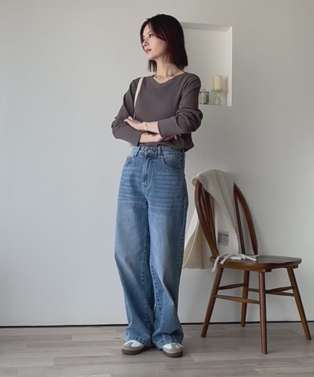 ・Vネックで抜け感と上品さを演出