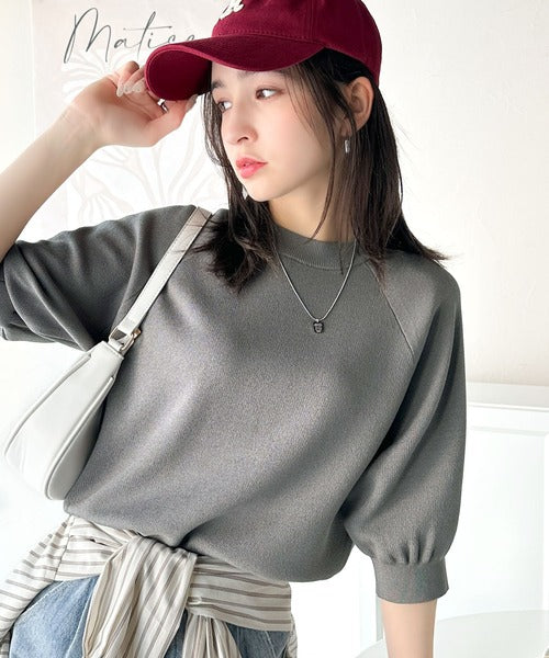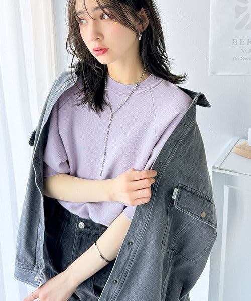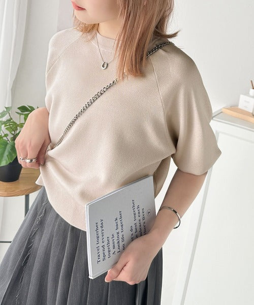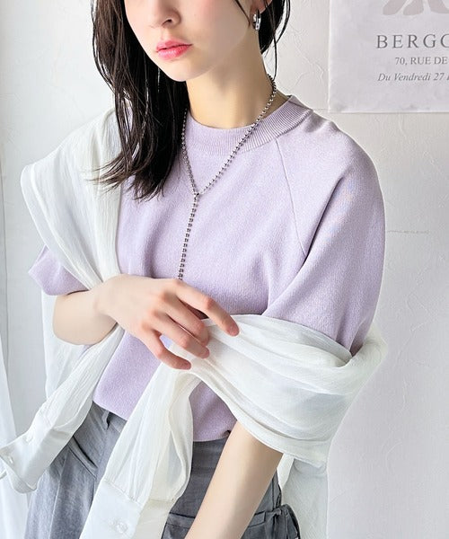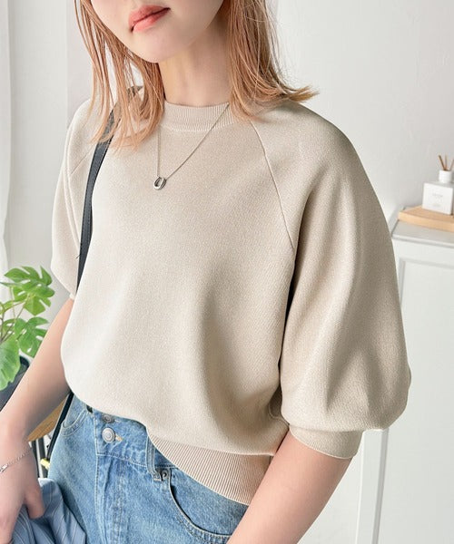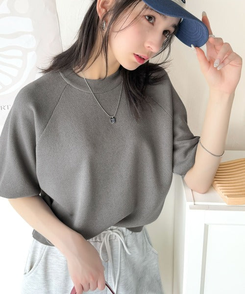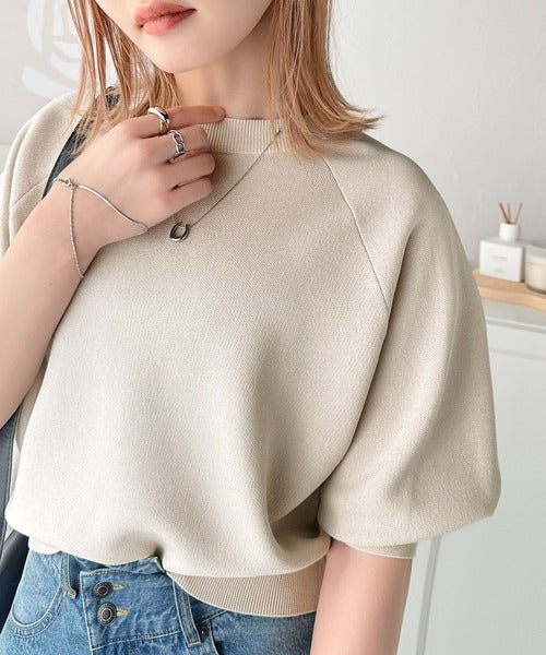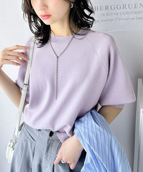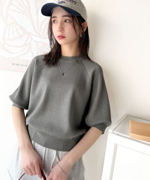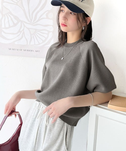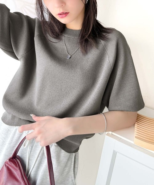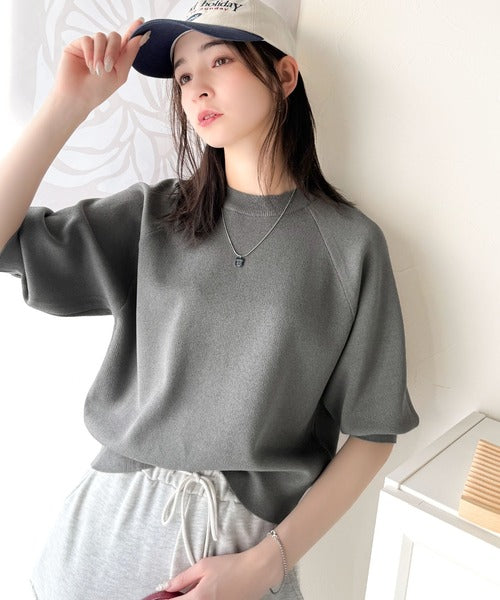 抜け感のある洗練デザイン。ラグランコンパクトスウェット風ニット(半袖) ce1260415