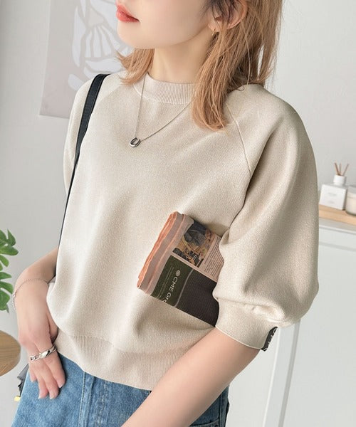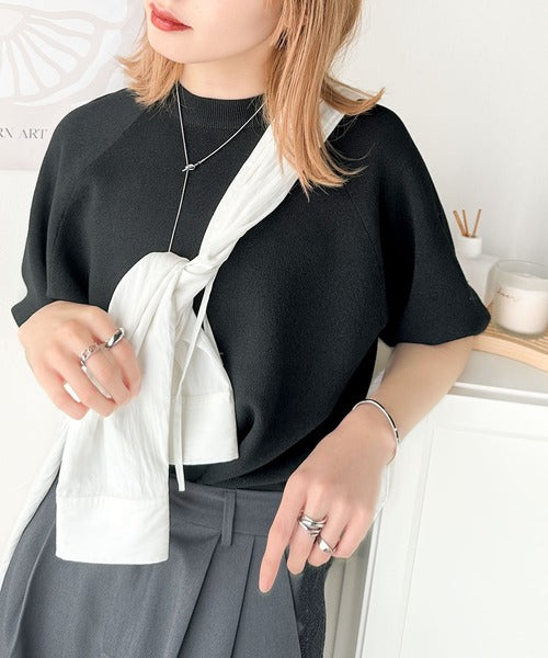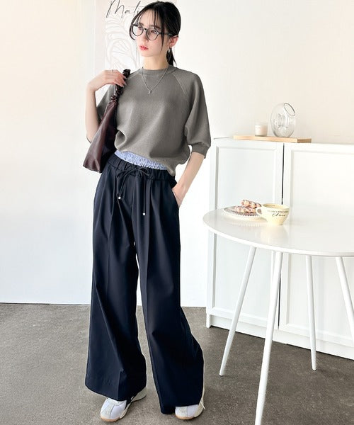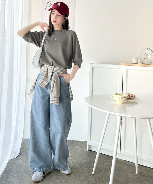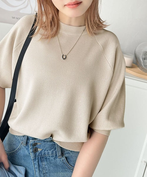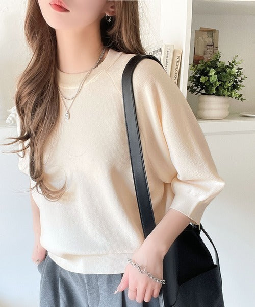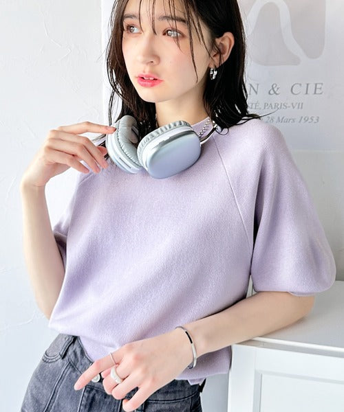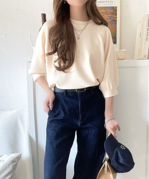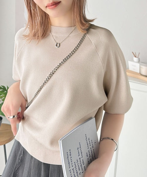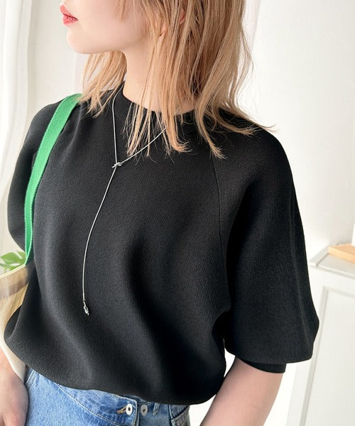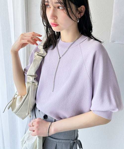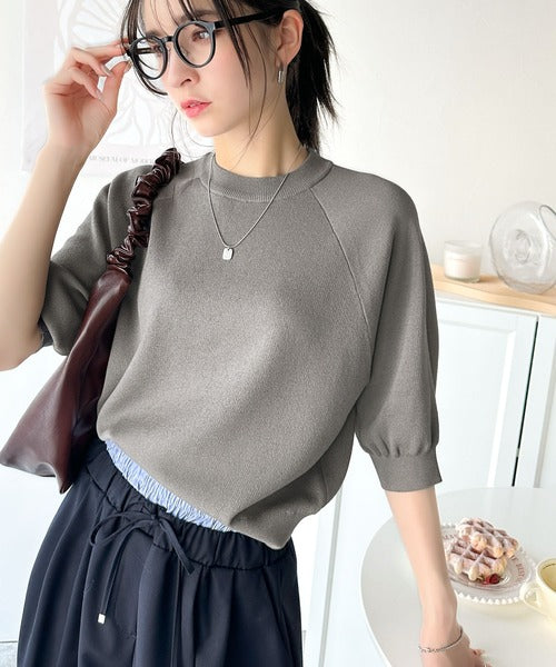 抜け感のある洗練デザイン。ラグランコンパクトスウェット風ニット(半袖) ce1260415