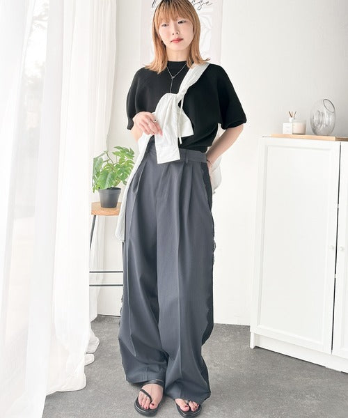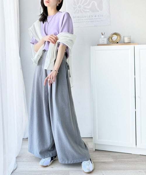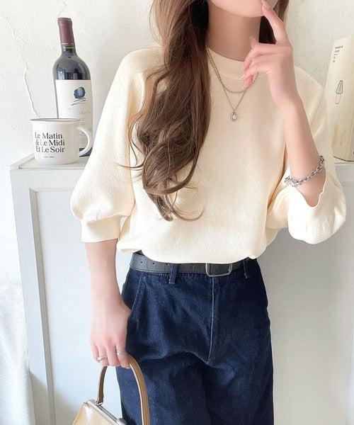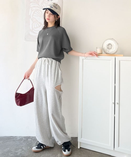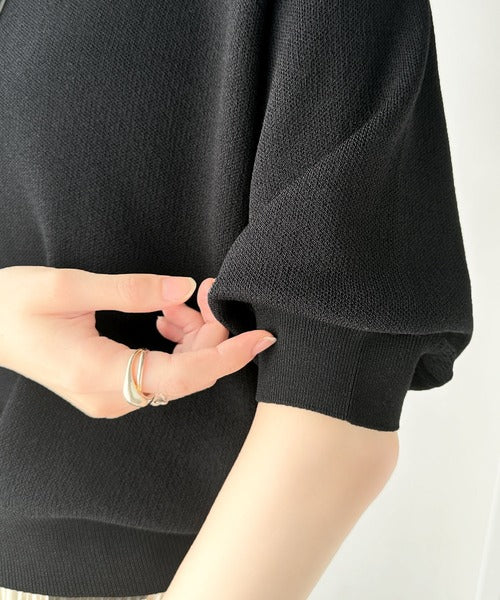 スウェットライクな素材感が程よいカジュアルさを演出する半袖ニット。