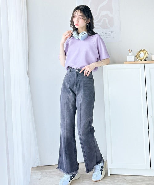 その日の気分に合わせてカーブデニムやフレアパンツを合わせてもOK◎