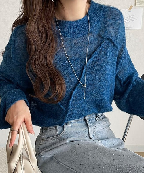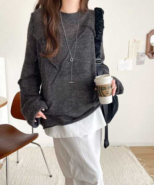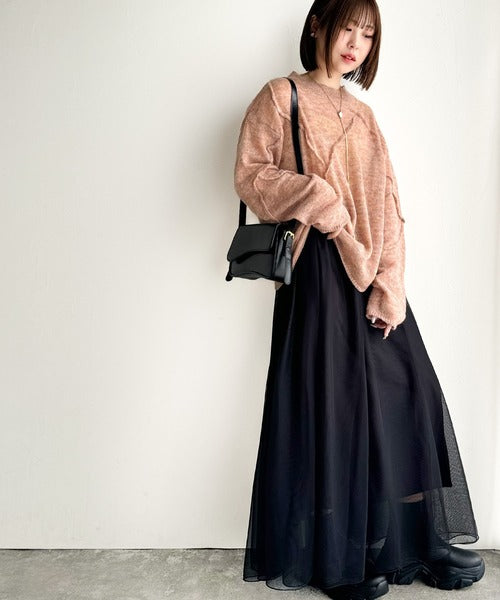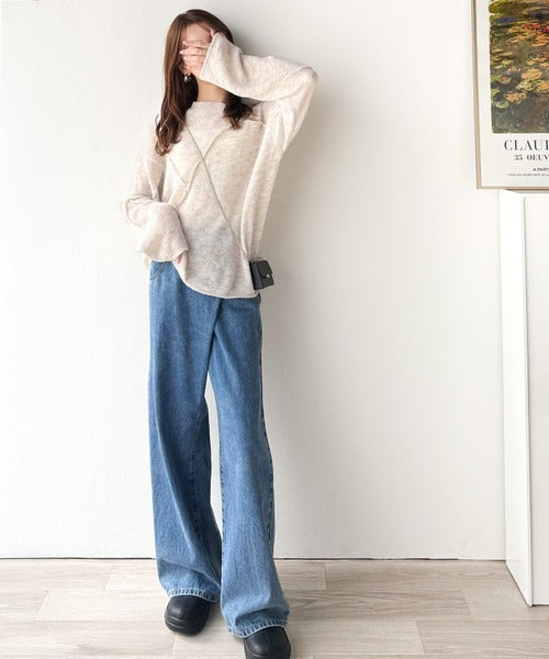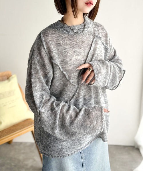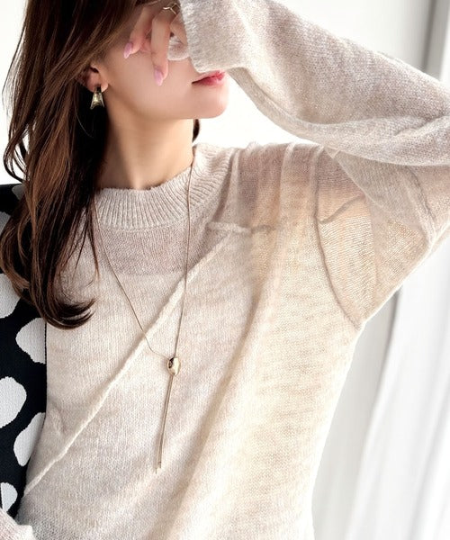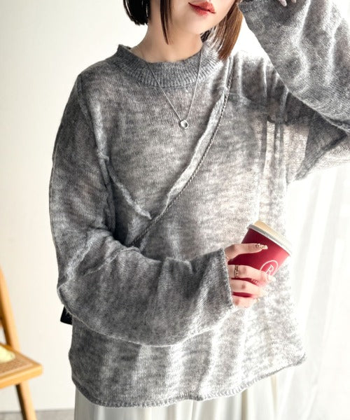 “ゆるっと”が叶える、1秒垢抜け!モヘアタッチシアー変形タック柄ニット(長袖) ce1260450